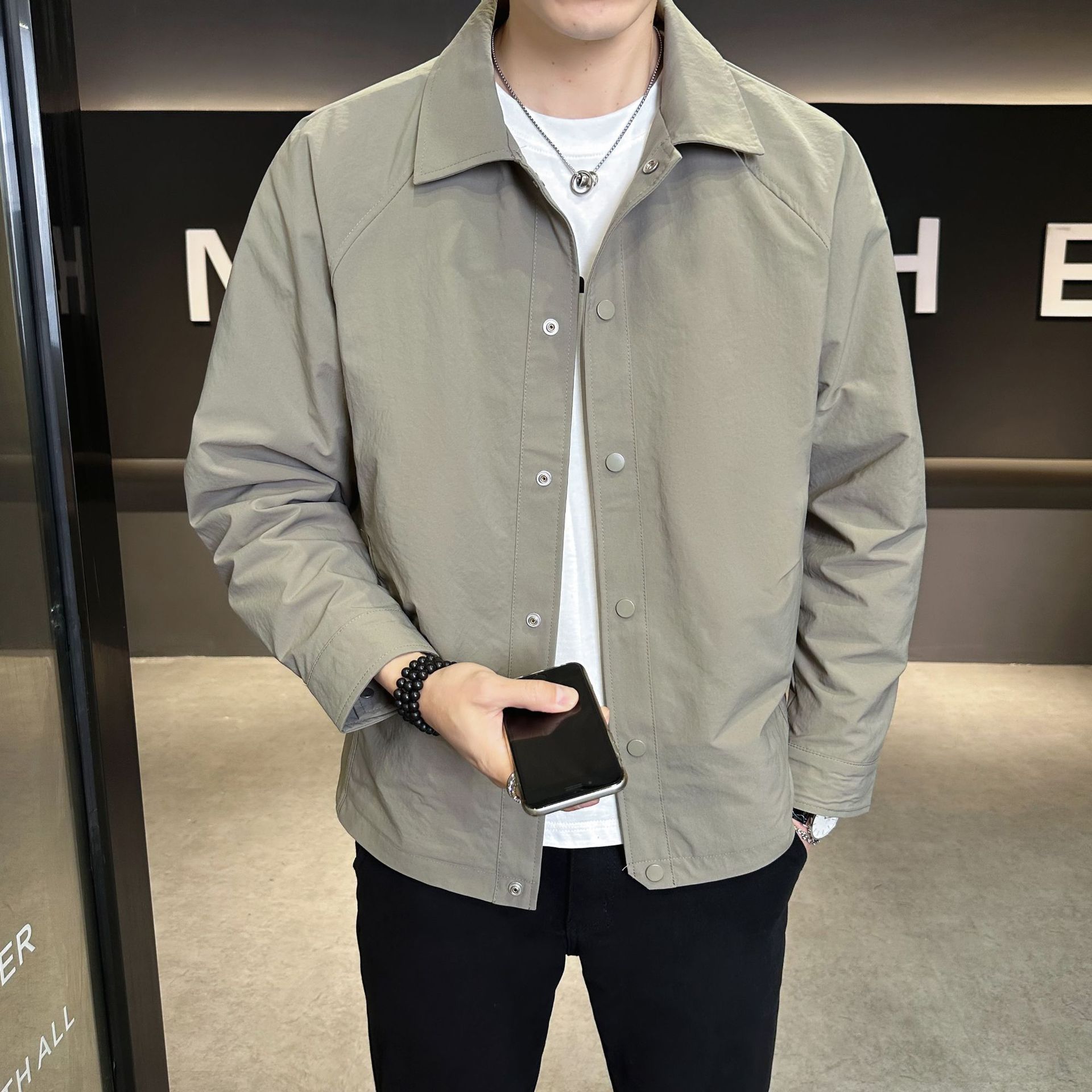남성용 재킷 2026년 봄 신상 루즈핏 비즈니스 캐주얼 셔츠 긴팔 상의 단색 심플 라펠 코트스토어 가기