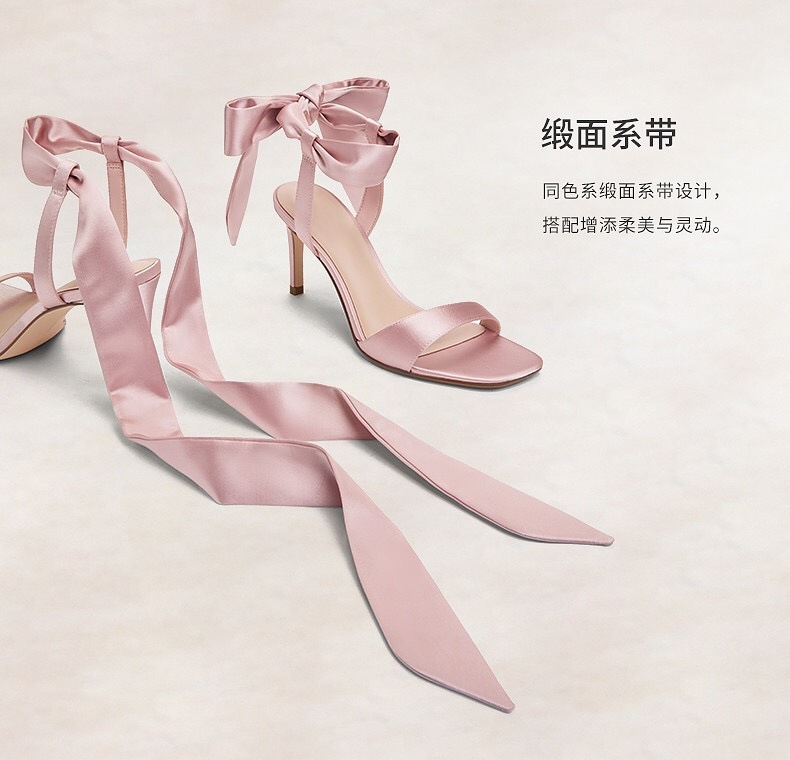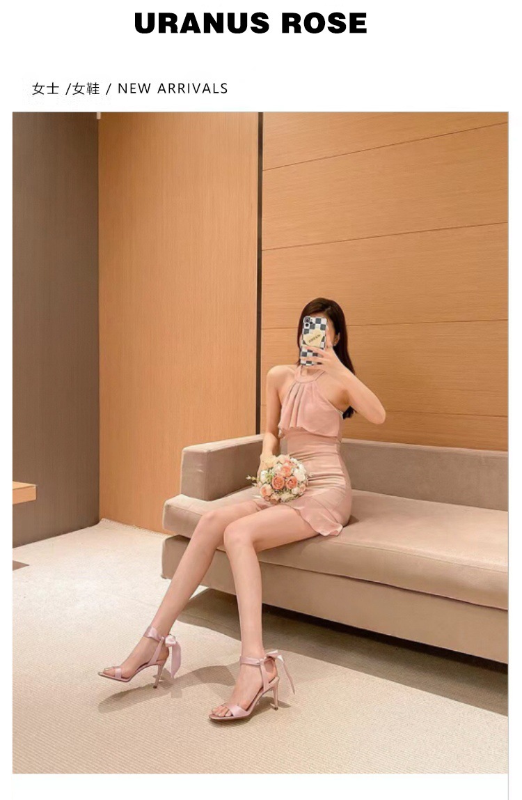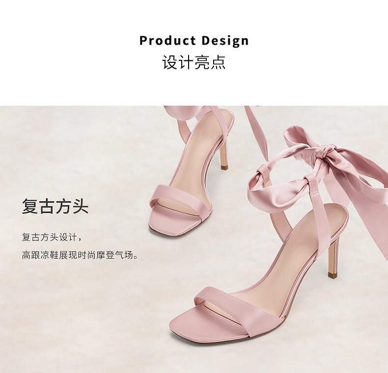 활 끈 하이힐 여성 2025 년 여름 새로운 아름다운 요정 스타일 원피스 새틴 샌들스토어 가기