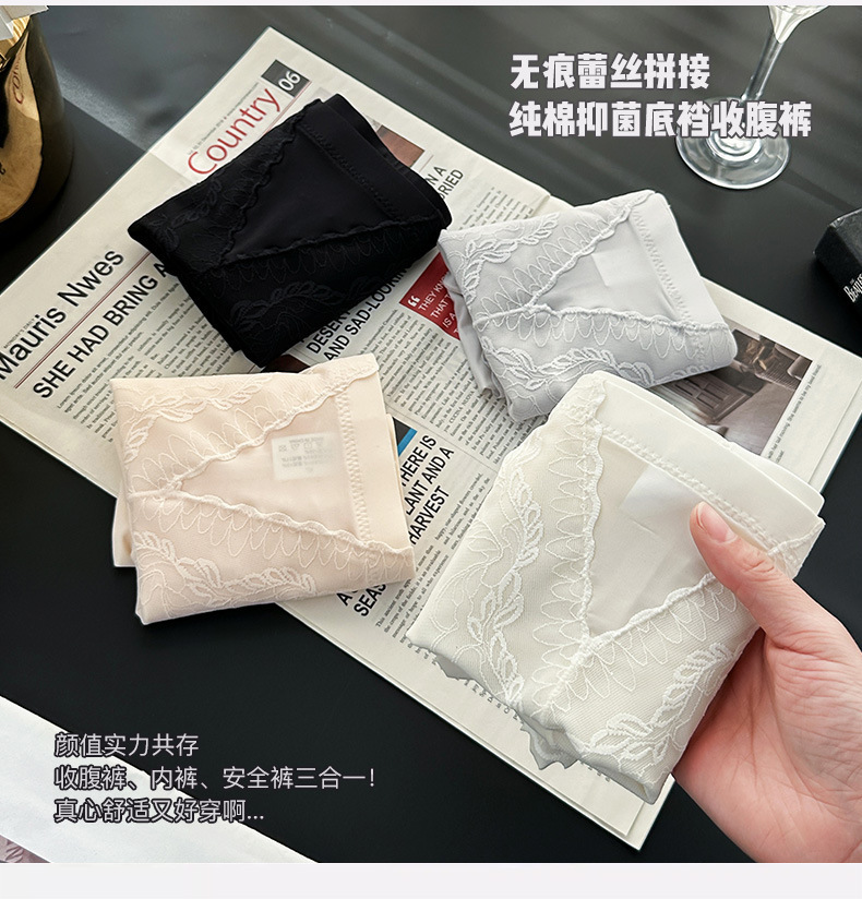 여름 레이디 바느질 레이스 라이트 플라스틱 바지 안티 러닝 퓨어 코튼 크로트 벨트 리프팅 힙베이스 아이스 실크 높은 허리 안전 바지