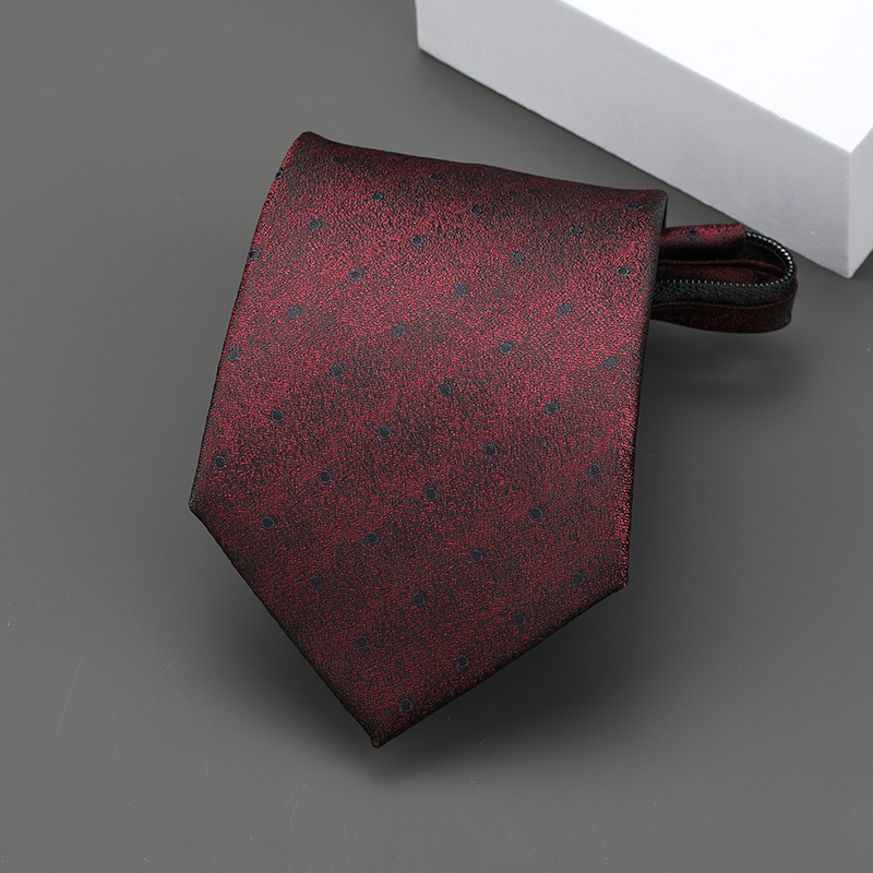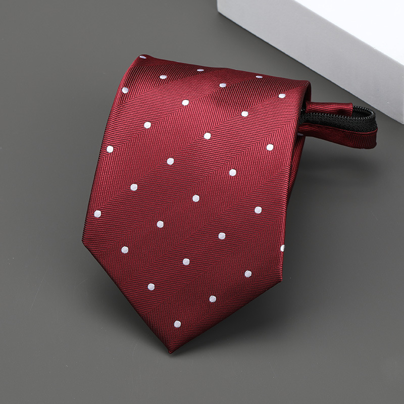 • 8cm 버건디 화이트 도트 지퍼 스타일