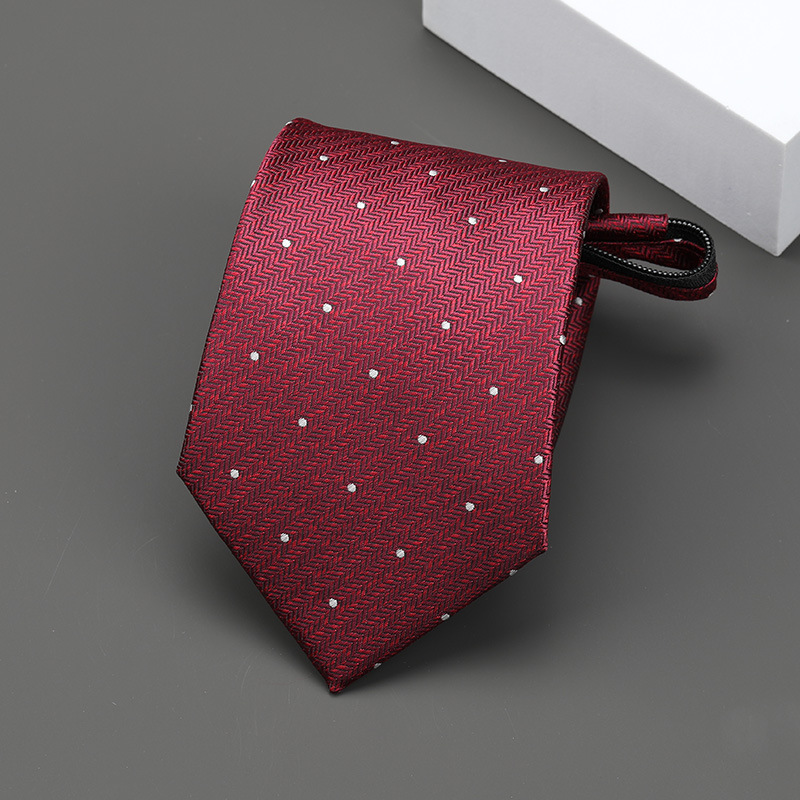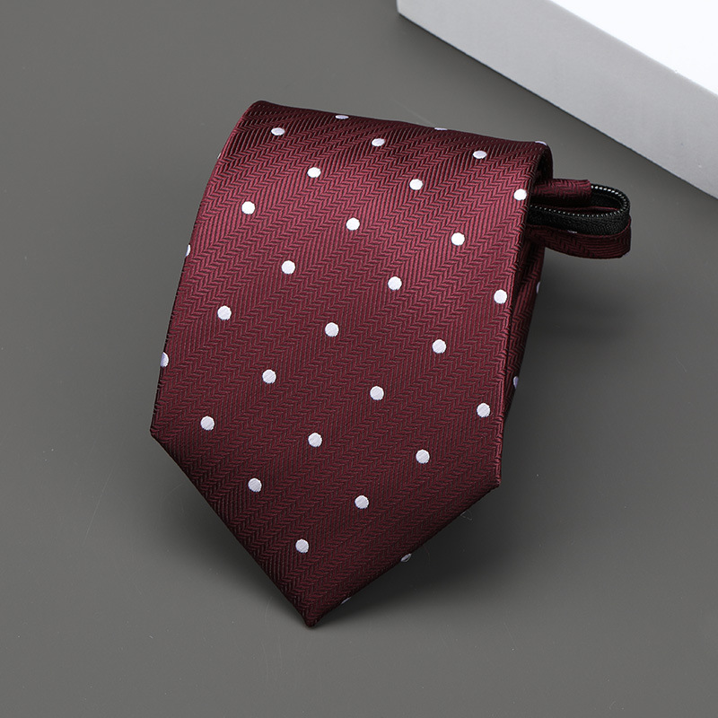 • 8cm 버건디 헤링본 화이트 도트 지퍼 스타일