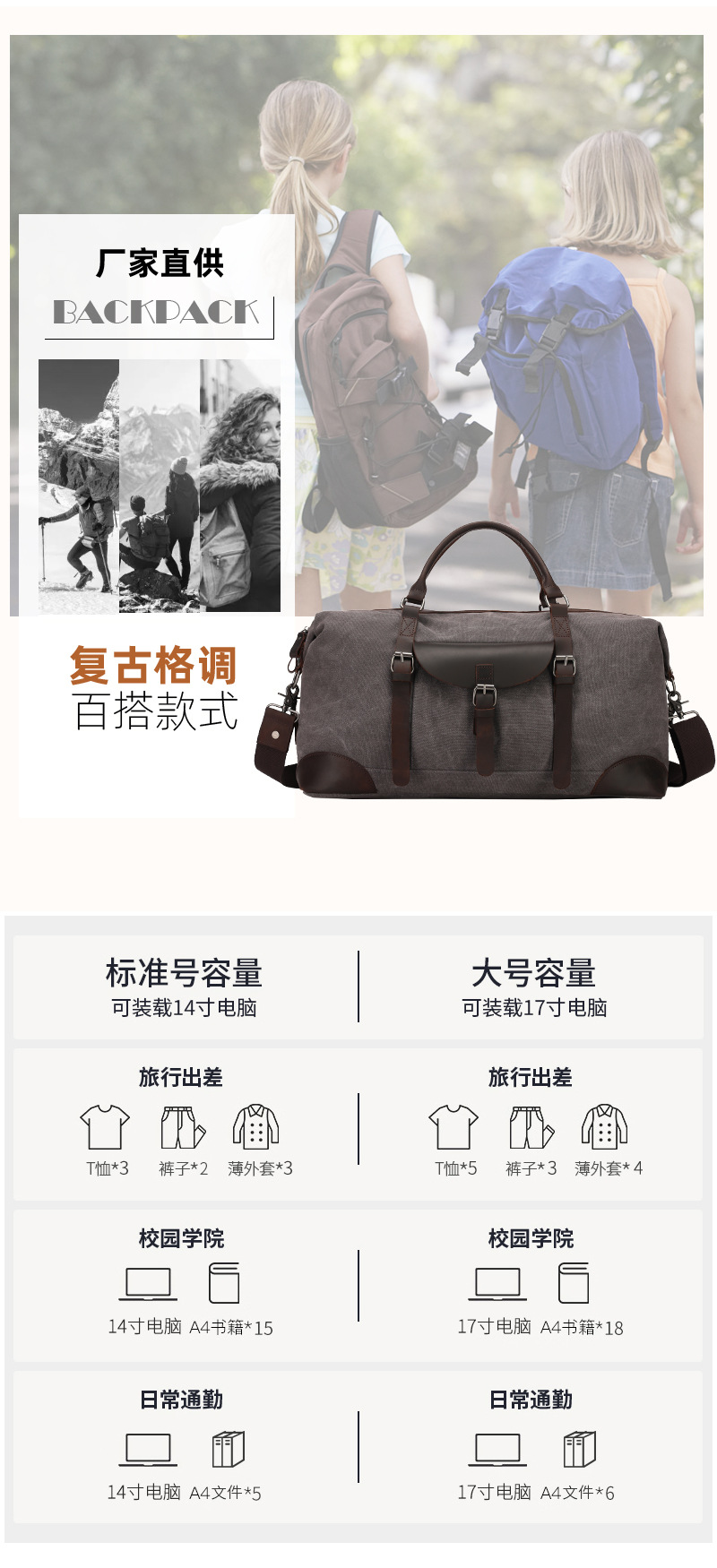 남성 레트로 캔버스 대용량 여행 가방 크로스 바디 백 유럽과 미국 캐주얼 피트니스 휴대용 대형 가방 여행 가방 배낭스토어 가기