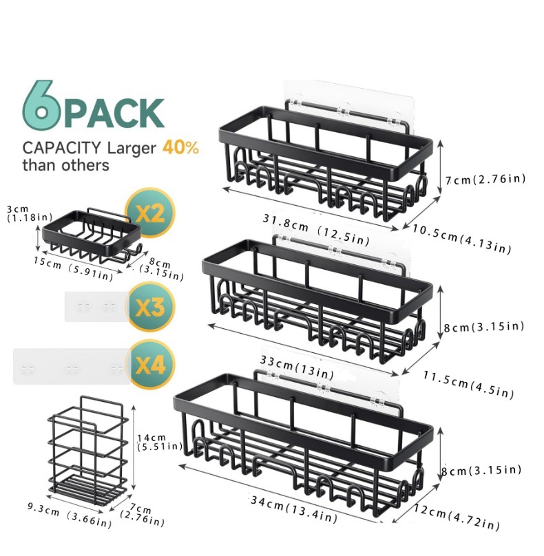 • 6피스 욕실 선반 세트(대형, 중형, 소형 + 비누 + 칫솔 홀더)★★★★