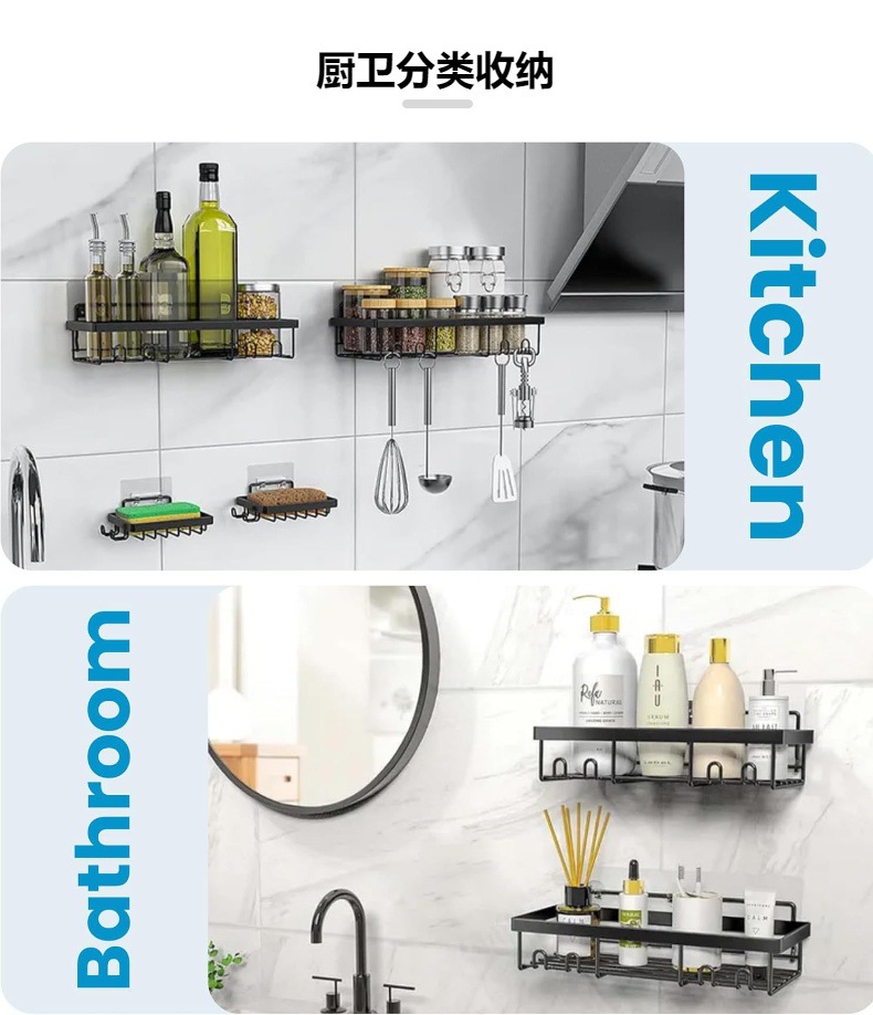 收纳场景:厨房收纳,卫浴收纳,客厅收纳货