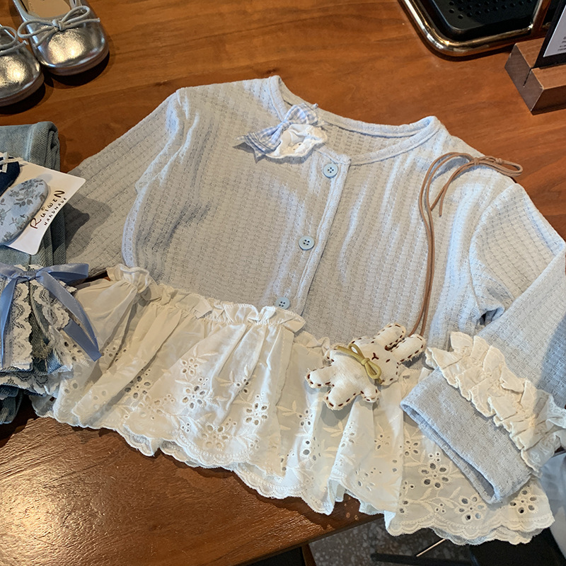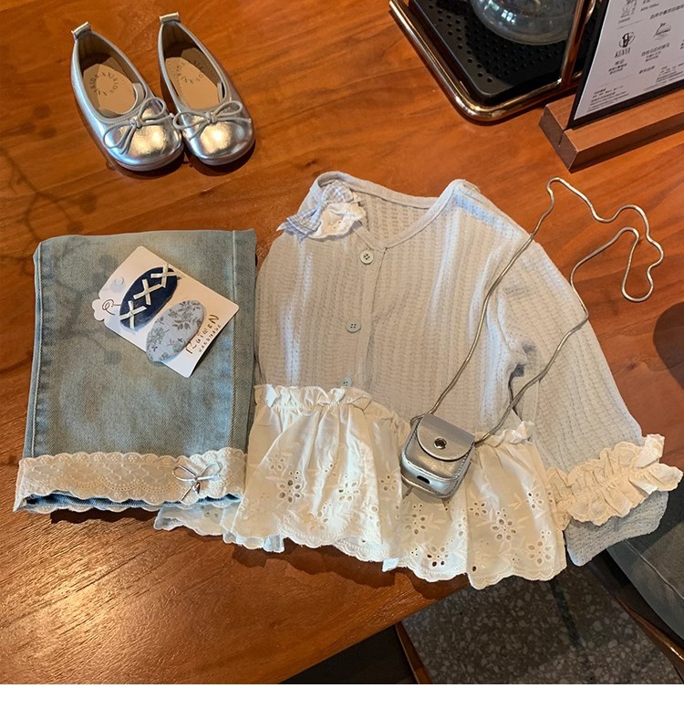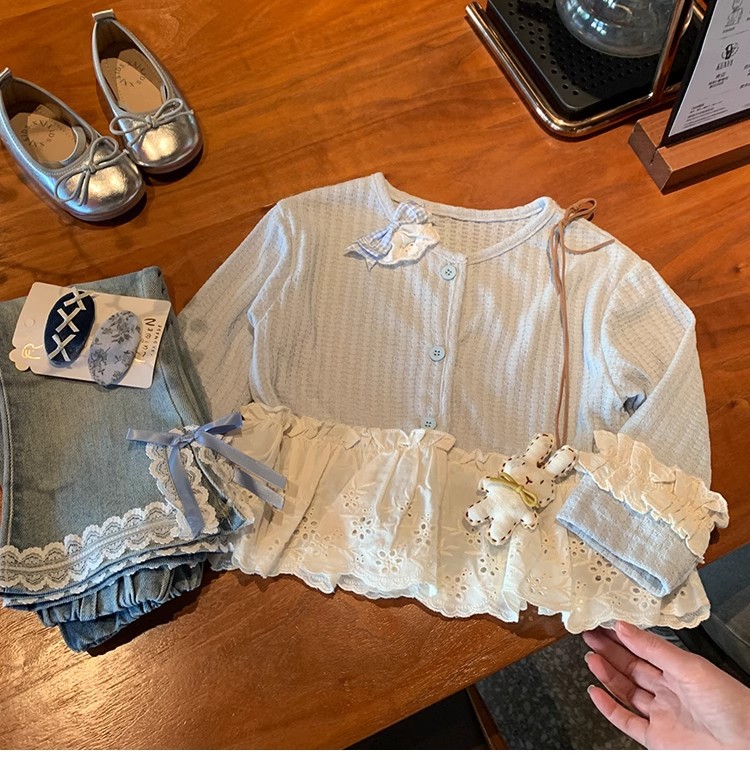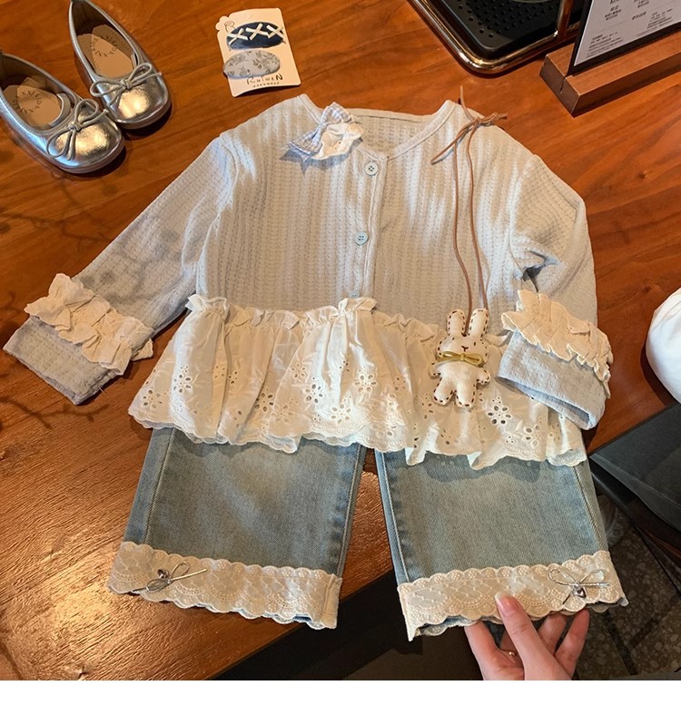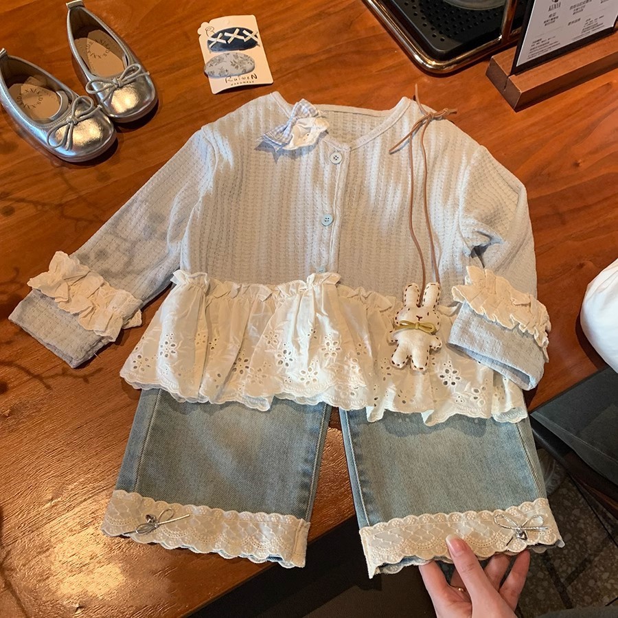 소녀 세트 니트 카디건 재킷 달콤한 공주 2025 새로운 봄과 가을 아기 소녀 서양식 청바지스토어 가기