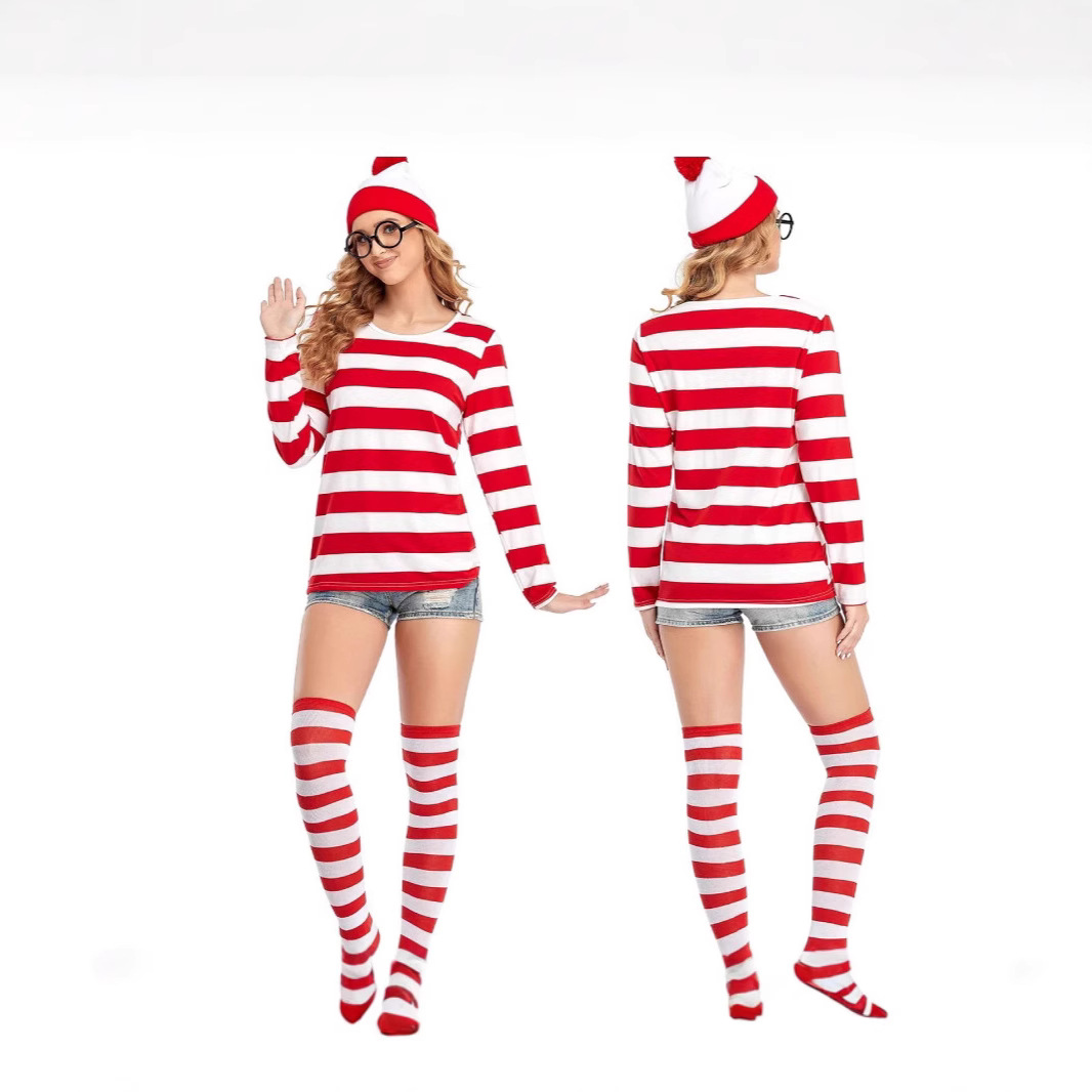 영국 애니메이션 스마트 월리 어디 월리? 가족 부모 의상 할로윈 COS 플레이 원피스