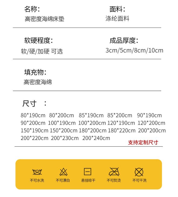 고밀도 스폰지 매트리스 가정용 매트리스 강매트 타타미 학생 기숙사 싱글 더블 두꺼운 매트리스 쿠션스토어 가기