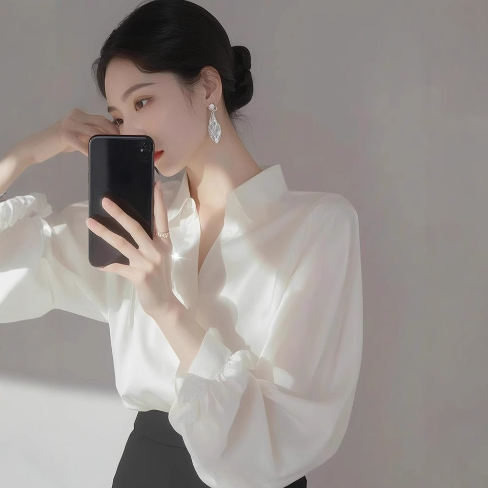 화이트 셔츠 여성 전문 하이 엔드 센스 2025 봄 새로운 도착 라이트 성숙한 로얄 자매는 원피스 업 패션 쉬폰 셔츠스토어 가기