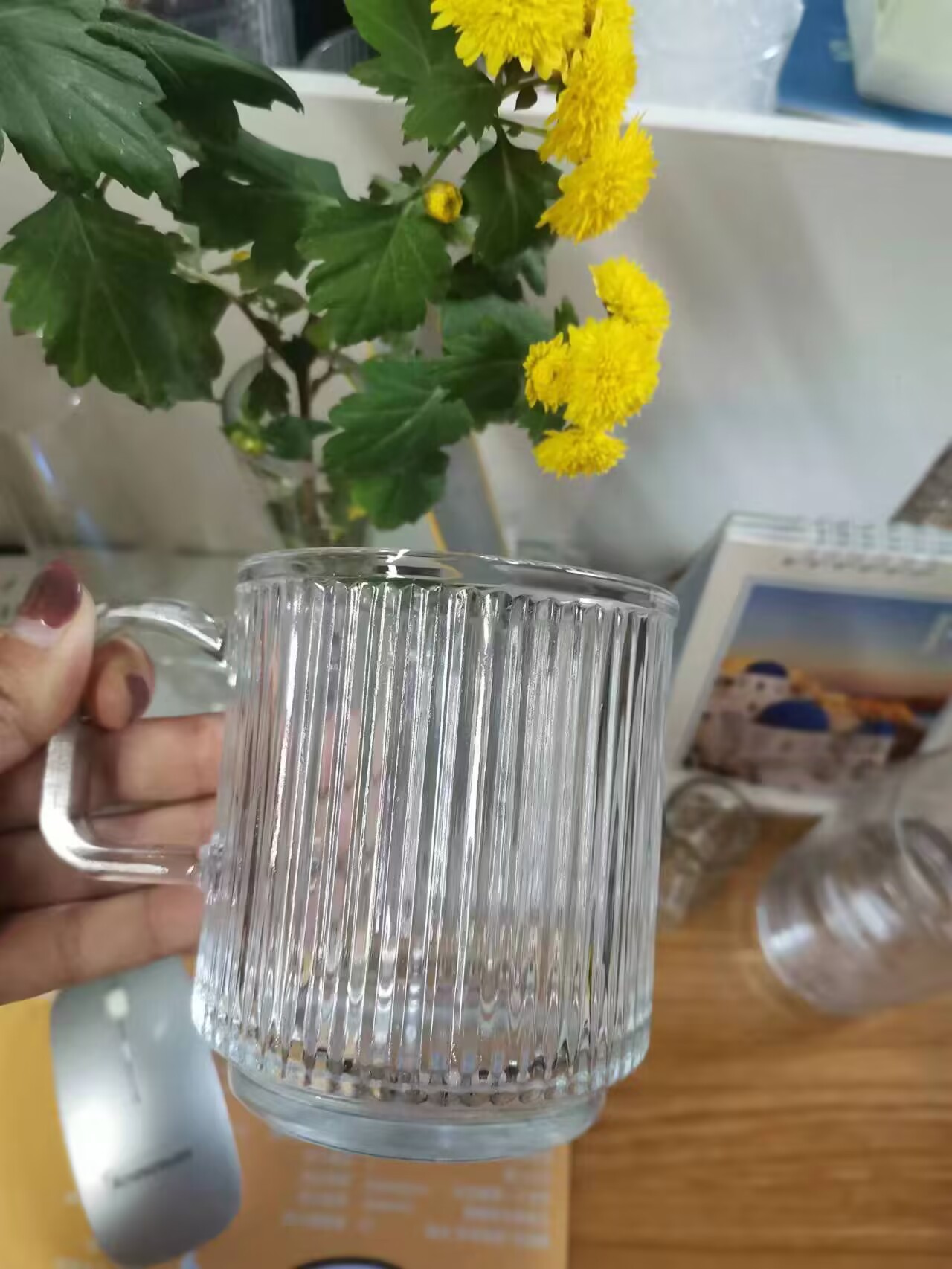 인스 스타일 유리 아이스 아메리카노 컵 손잡이 달린 머그컵 아침식사용 우유컵 물컵 가정용 물컵스토어 가기