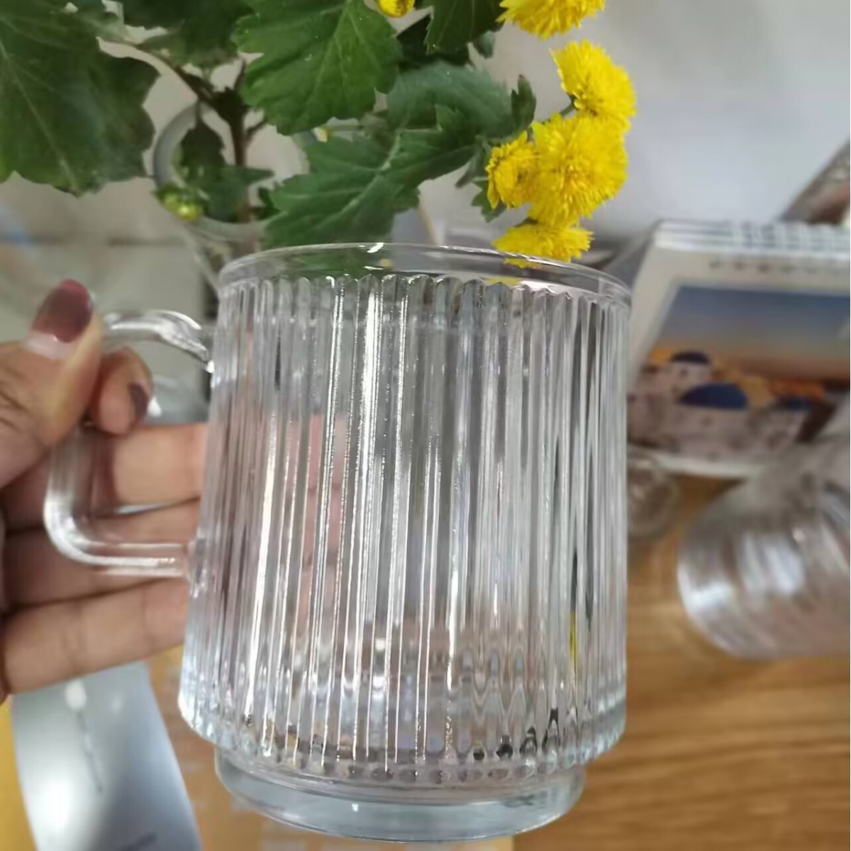 인스 스타일 유리 아이스 아메리카노 컵 손잡이 달린 머그컵 아침식사용 우유컵 물컵 가정용 물컵