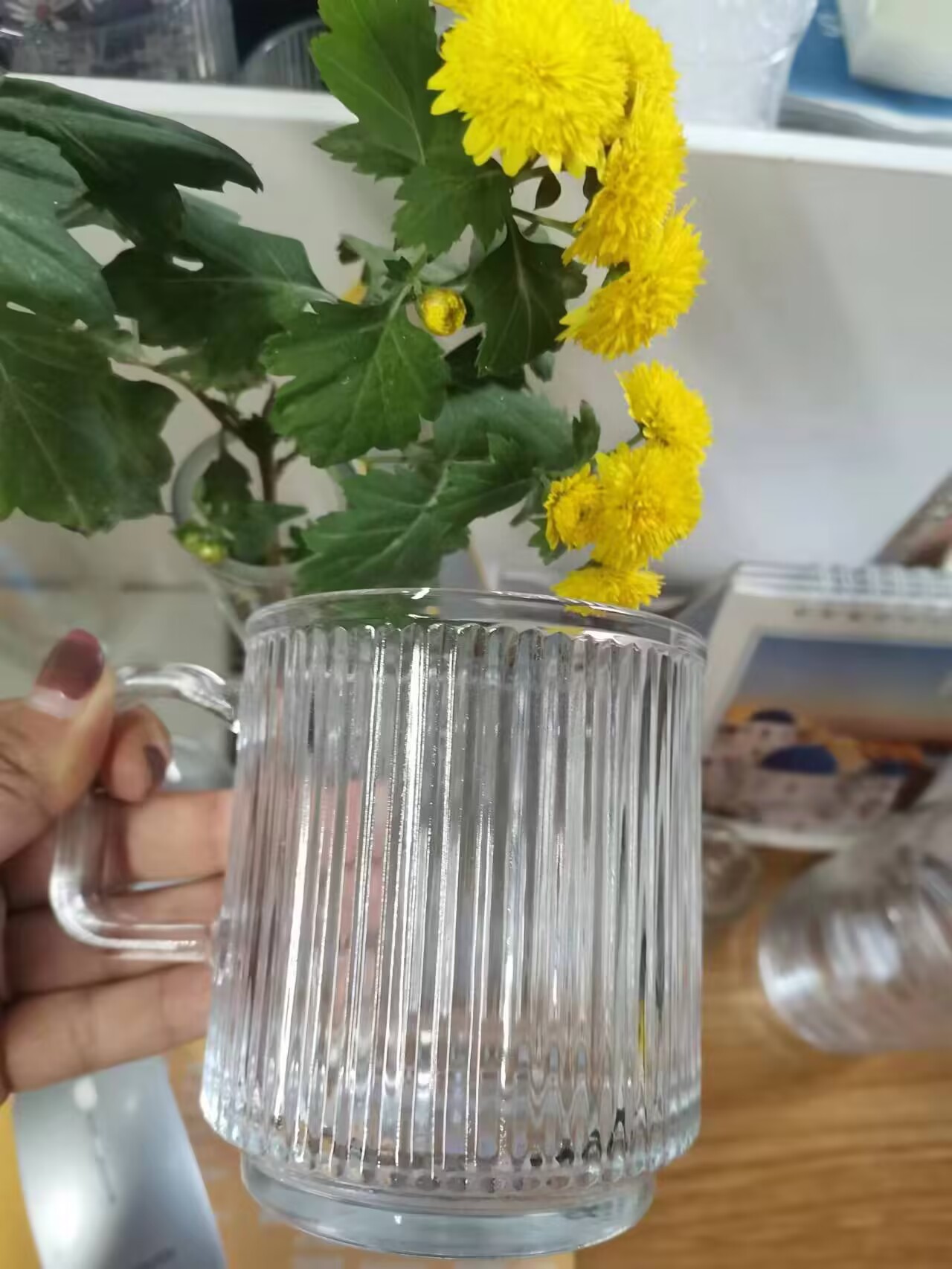 • 세로 줄무늬 손잡이 컵