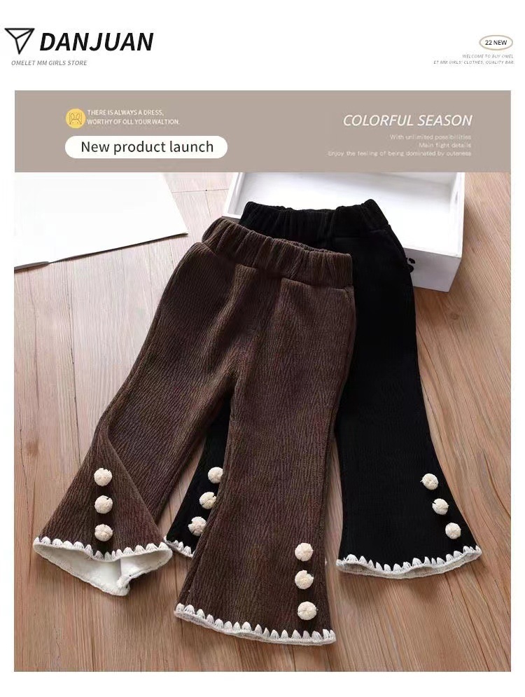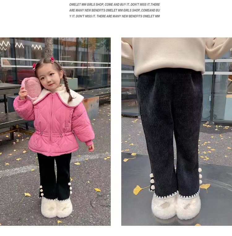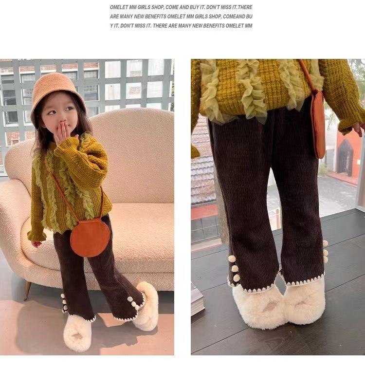 새로운 여성 베이비 아우터 레깅스 레이스 외국 스타일 플래 팬츠 올매치 바지 걸스 가을과 겨울 양털 긴 바지스토어 가기