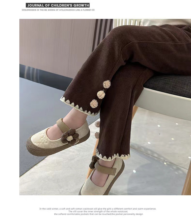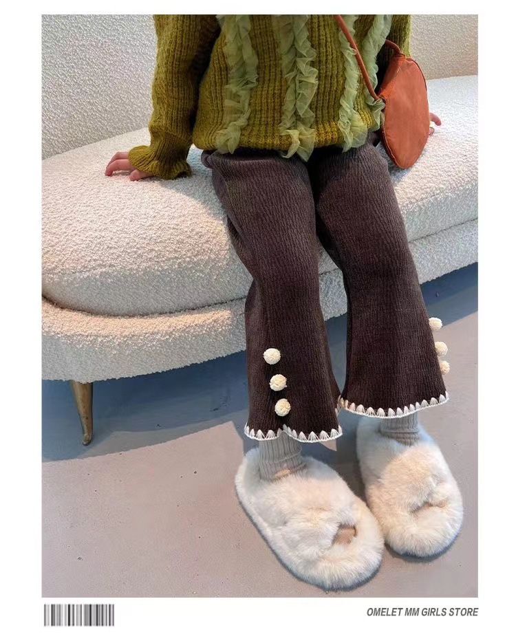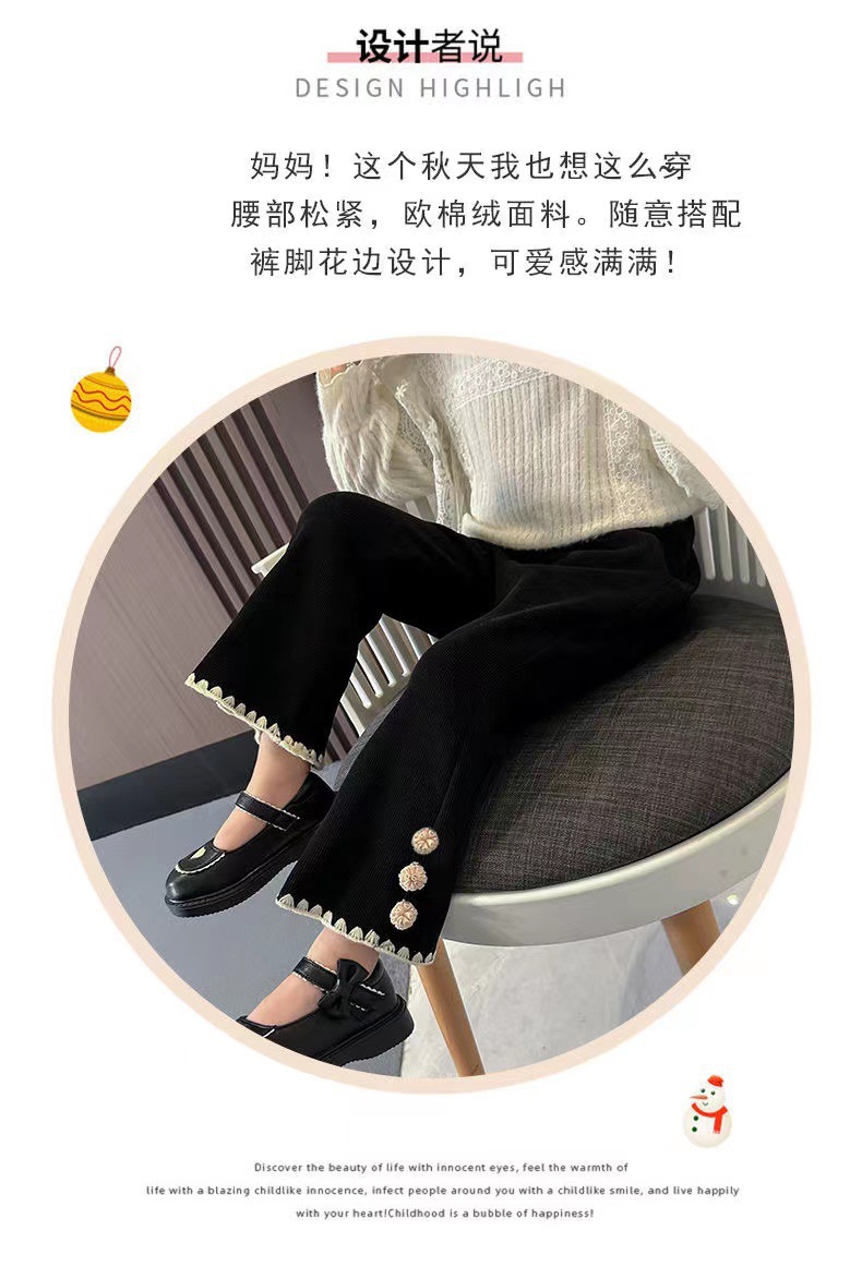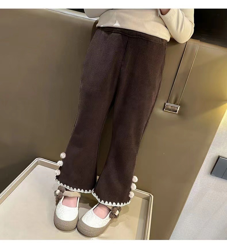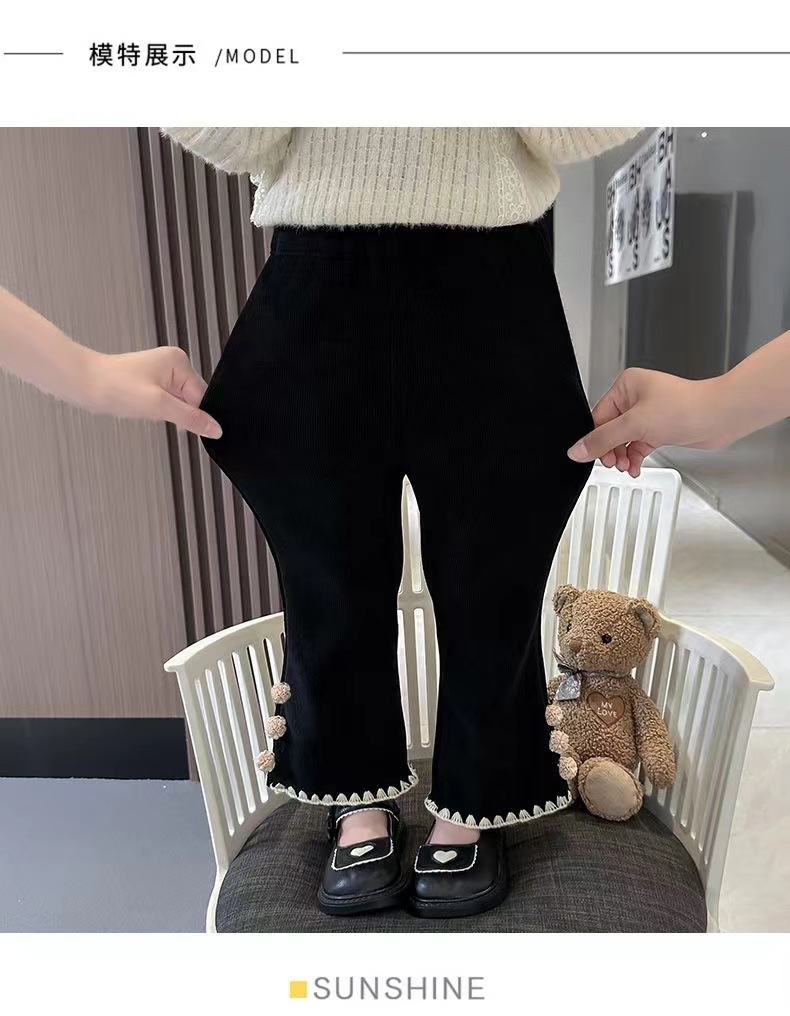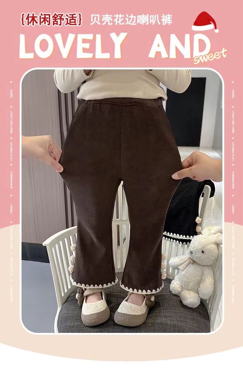 새로운 여성 베이비 아우터 레깅스 레이스 외국 스타일 플래 팬츠 올매치 바지 걸스 가을과 겨울 양털 긴 바지