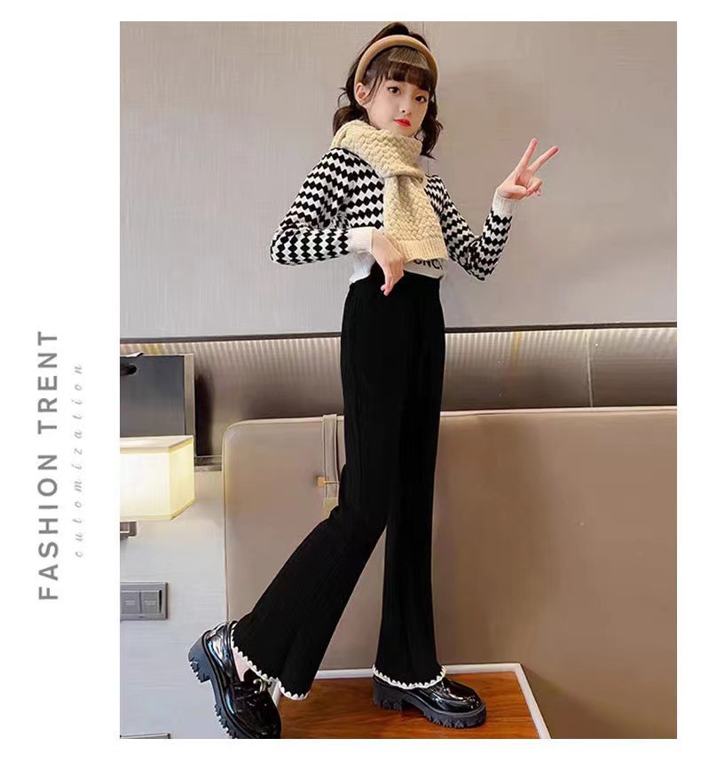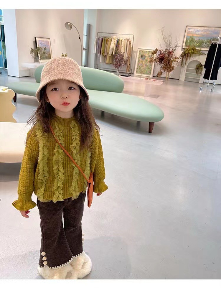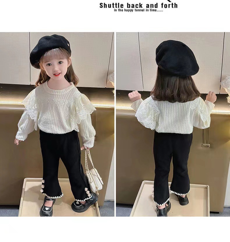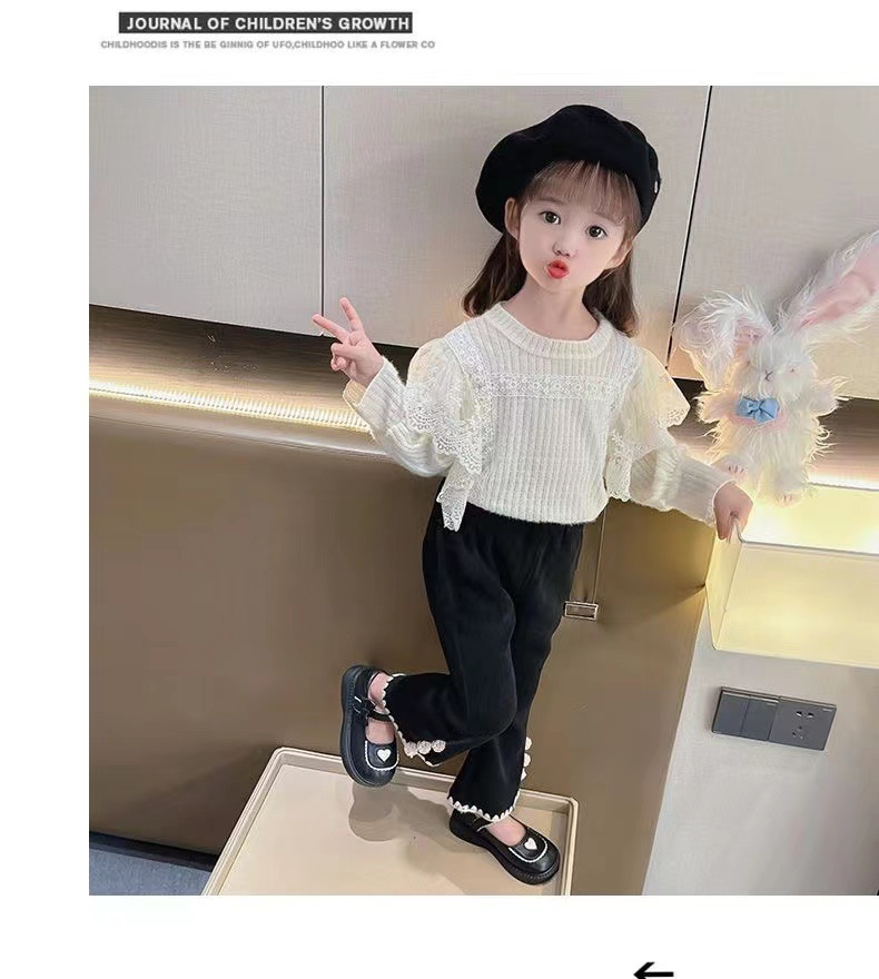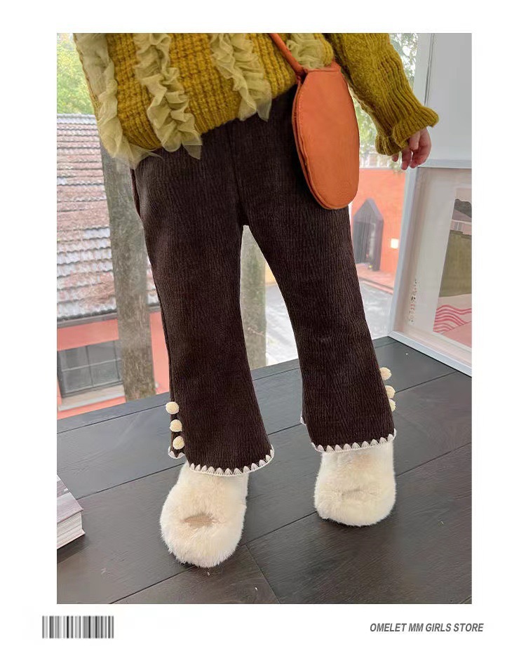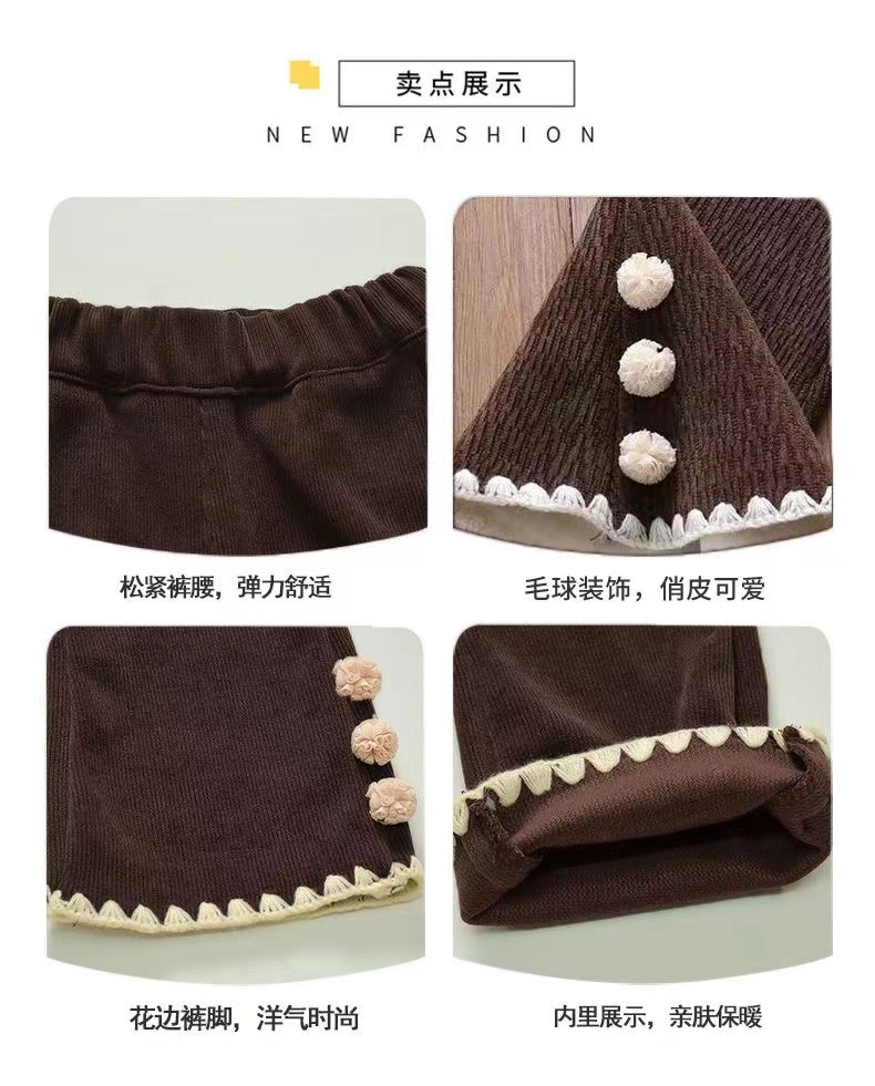 새로운 여성 베이비 아우터 레깅스 레이스 외국 스타일 플래 팬츠 올매치 바지 걸스 가을과 겨울 양털 긴 바지