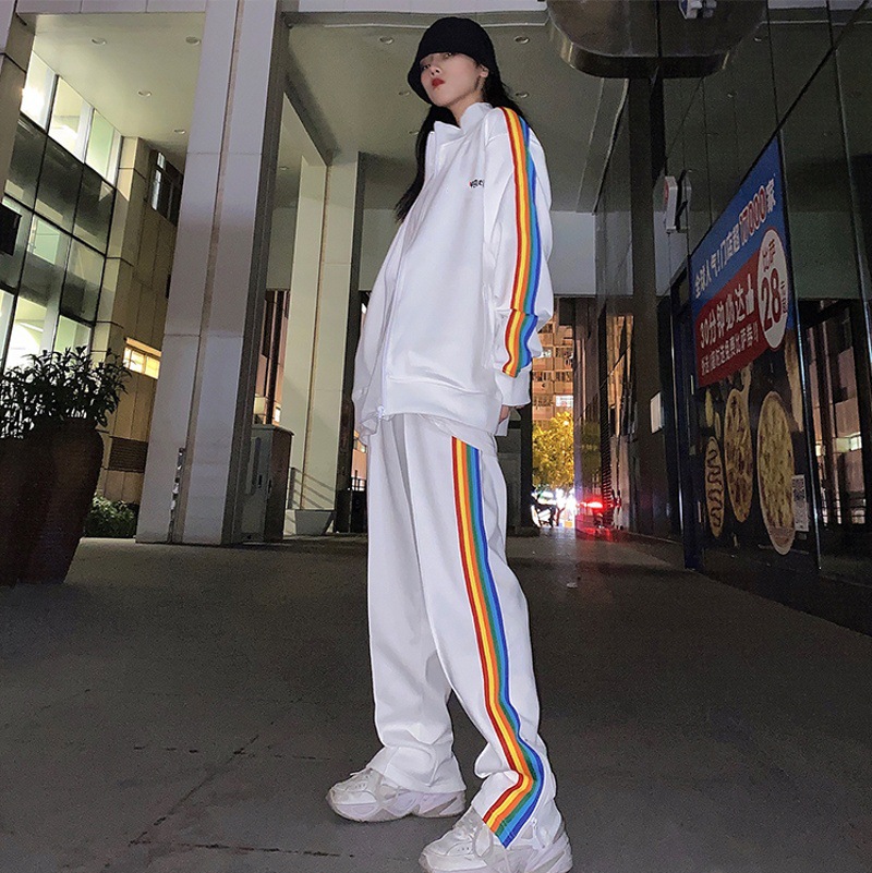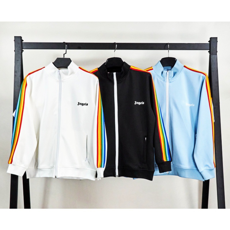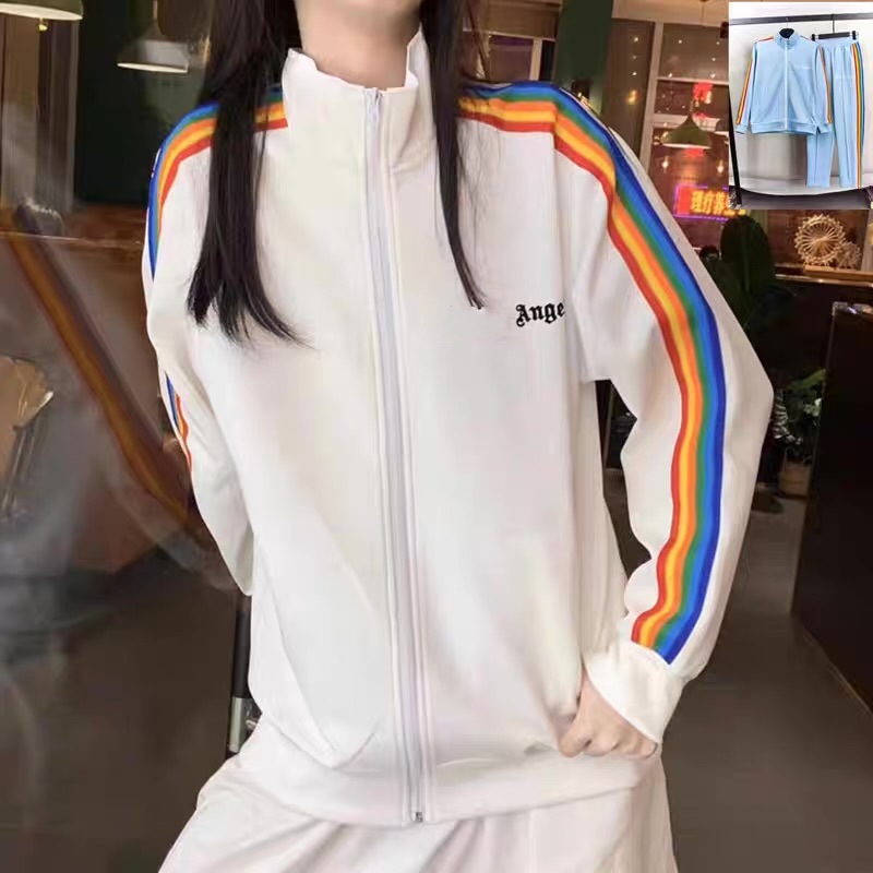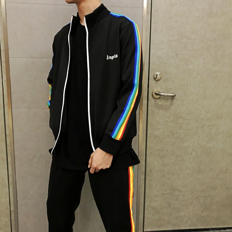대외 무역 정정 PA 패션 브랜드 레인보우 스트라이프 리본 지퍼 재킷 팜 트리 레트로 스포츠 재킷 남성용 교복스토어 가기