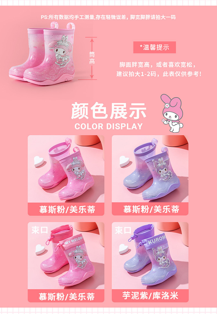 산리오 어린이 비 신발 소녀 쿨리 미 유치원 메를로 만화 아기 비 부츠 젤리 소녀 물 신발