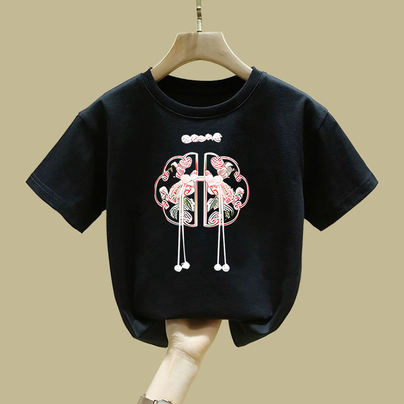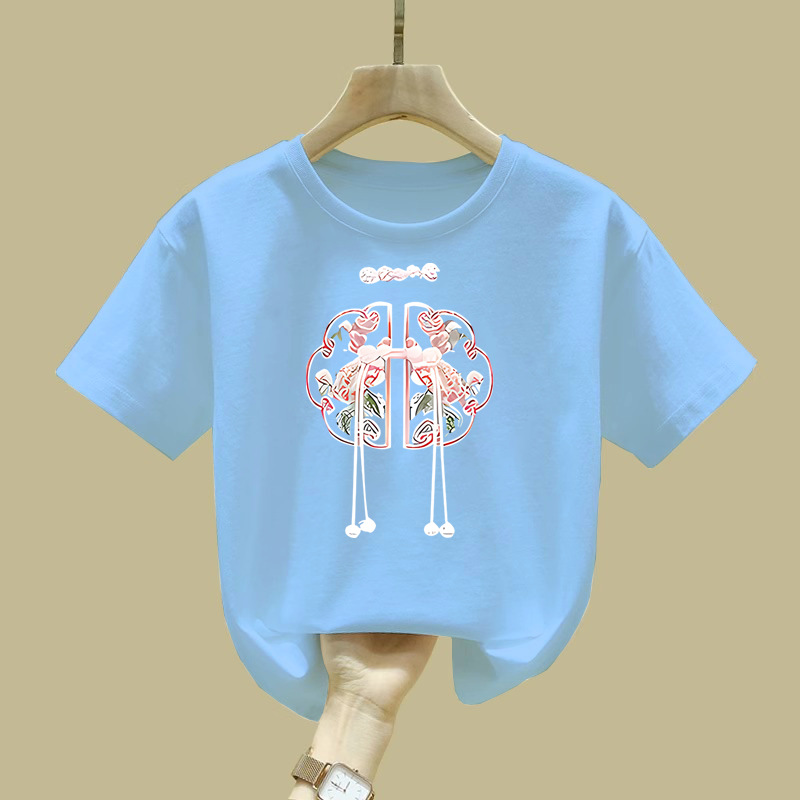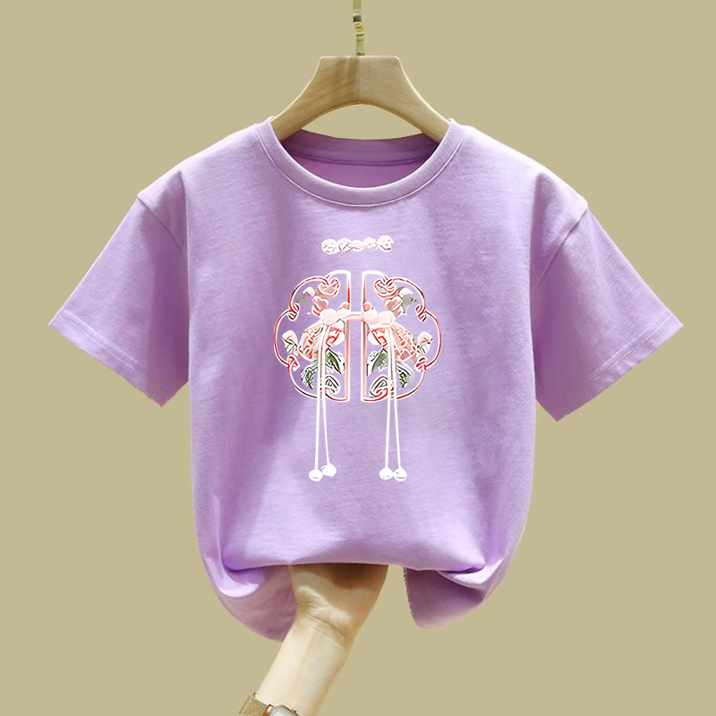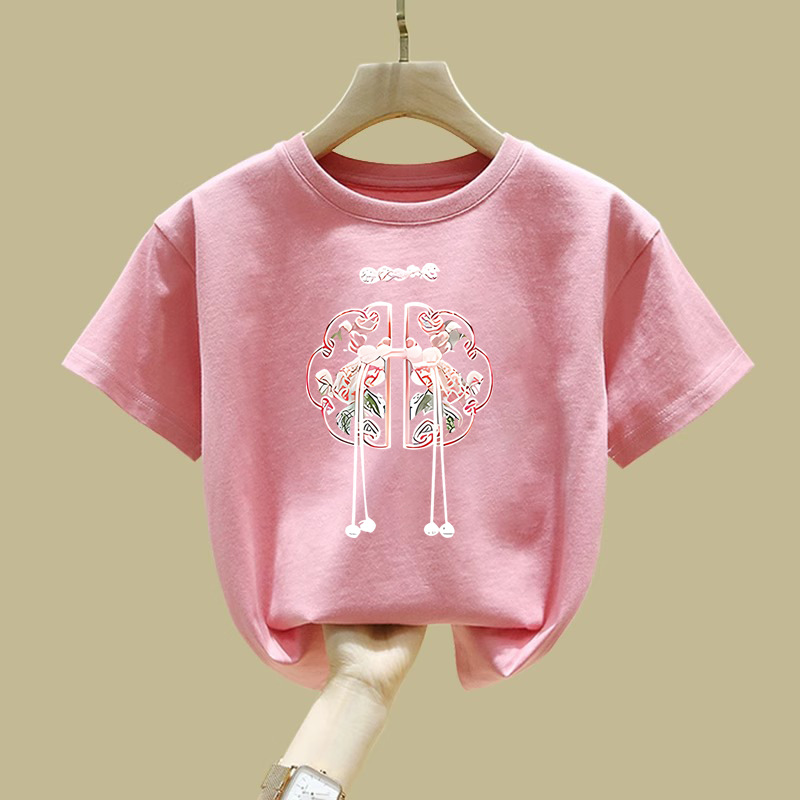 2433 # 면 아동복 소녀 티셔츠 짧은 소매 봄과 여름 어린이 신식 어린이 서양식 탑스토어 가기