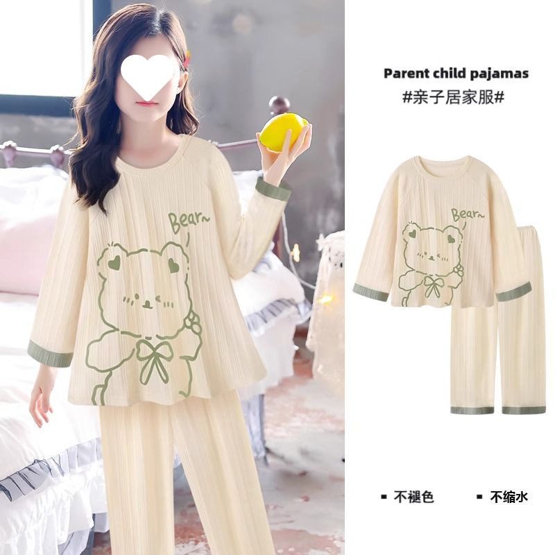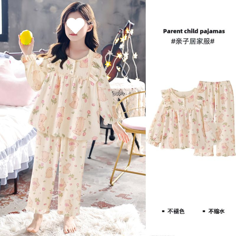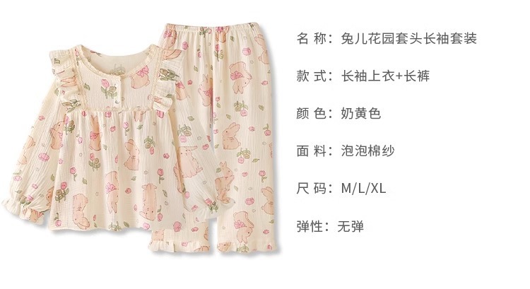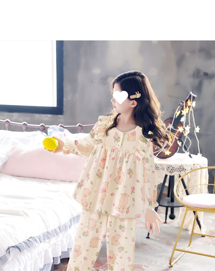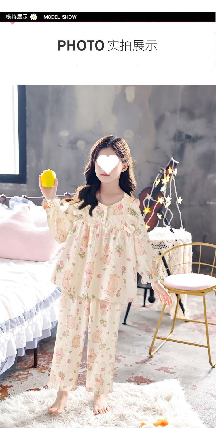 소녀의 잠옷 만화 스타일 작은 토끼 잠옷 어린 소녀의 봄과 가을 긴 소매 면 거즈 귀여운 홈 옷 세트스토어 가기