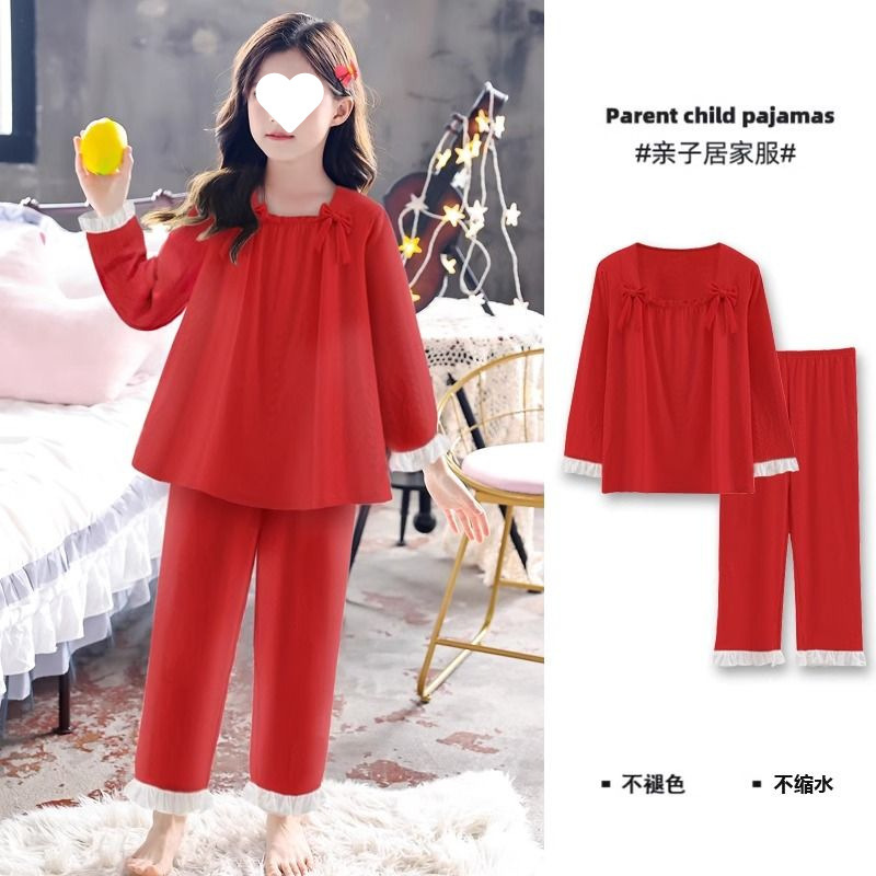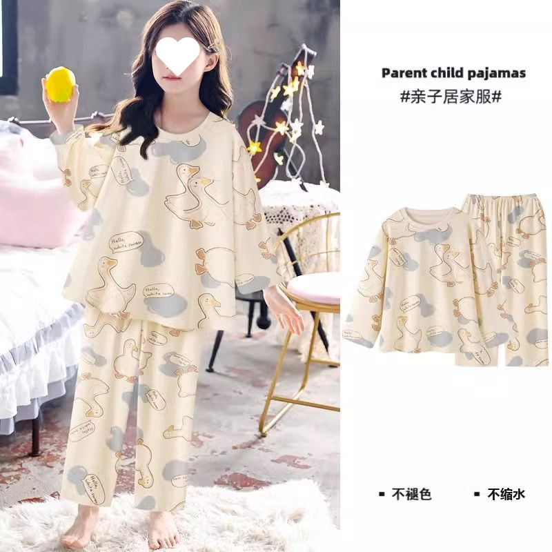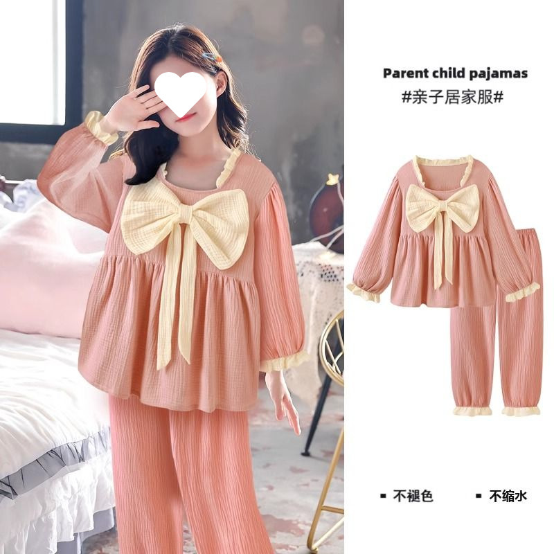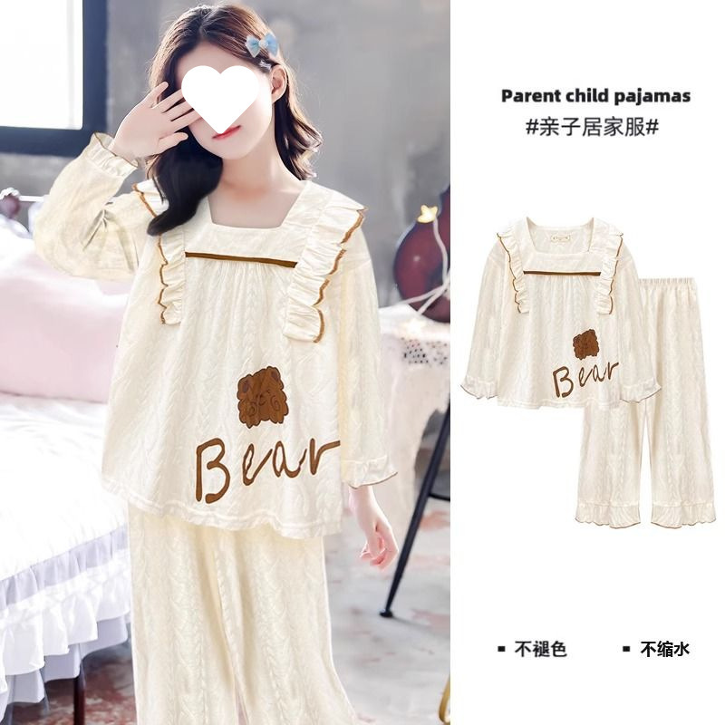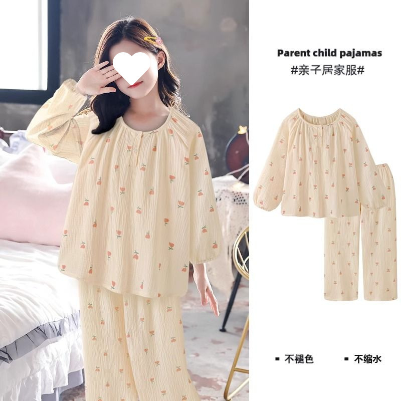 소녀의 잠옷 만화 스타일 작은 토끼 잠옷 어린 소녀의 봄과 가을 긴 소매 면 거즈 귀여운 홈 옷 세트스토어 가기
