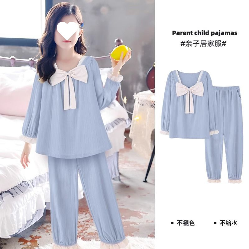 • 4447#블루 레이스 리본 긴 소매 및 바지