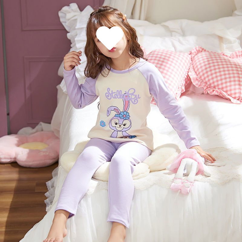 소녀의 잠옷 만화 스타일 작은 토끼 잠옷 어린 소녀의 봄과 가을 긴 소매 면 거즈 귀여운 홈 옷 세트