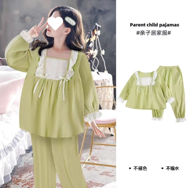 • 4446#녹색 레이스 리본 긴 소매 및 바지