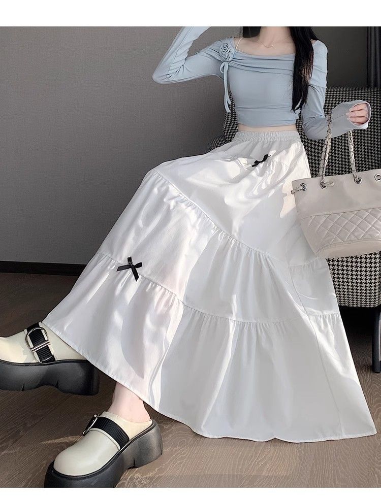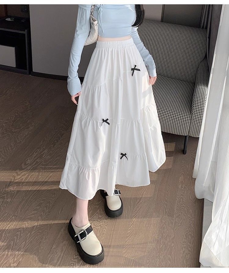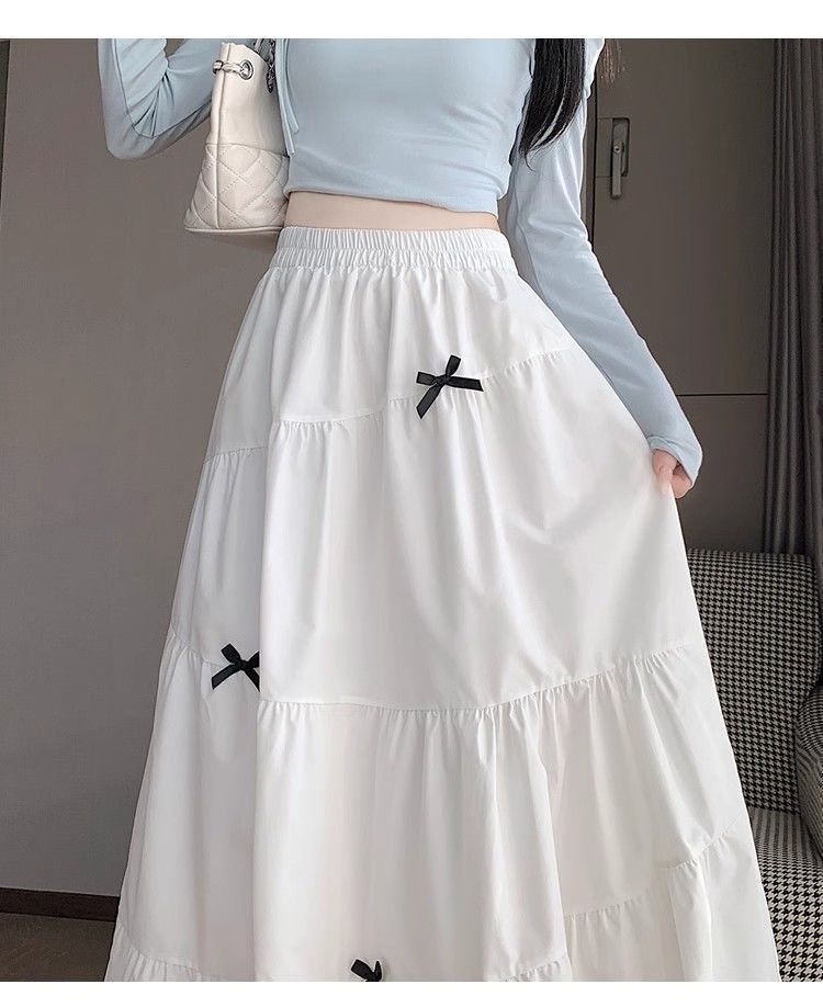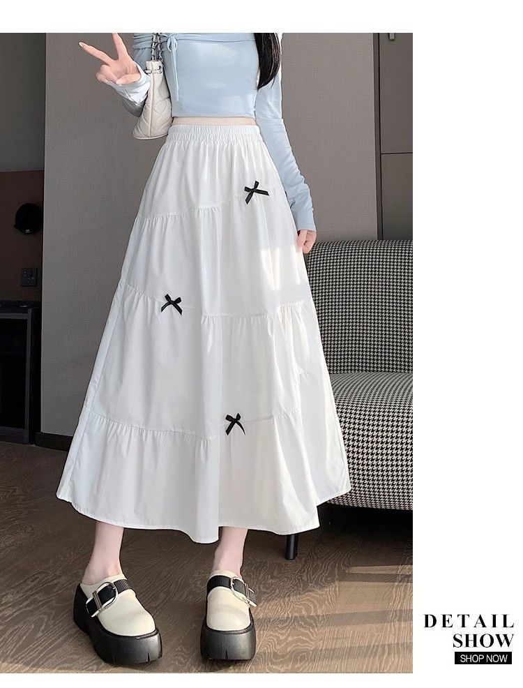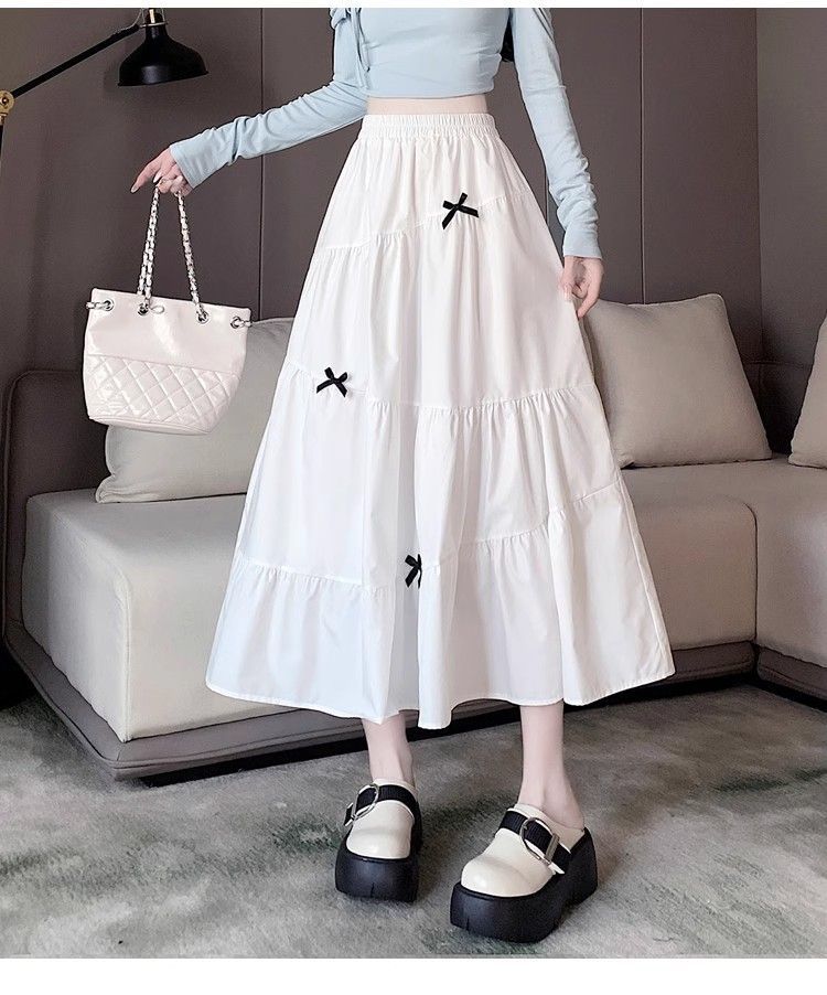프랑스 스타일 헵번 스타일 활 치마 여성 가을 작은 높은 허리 A-라인 폰툰 스커트 슬리밍 대형 우산 스커트스토어 가기