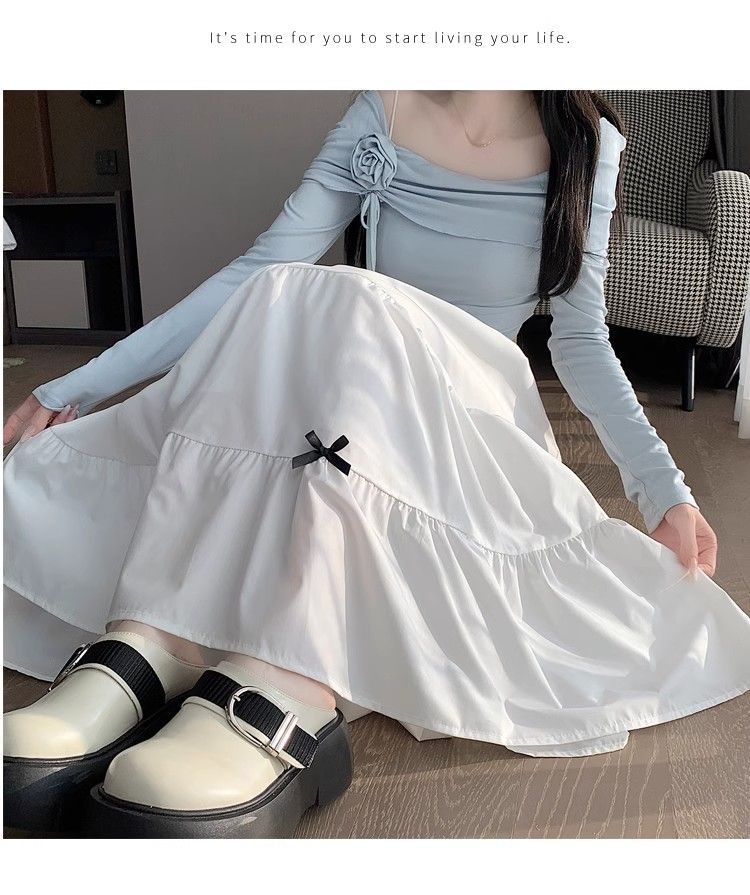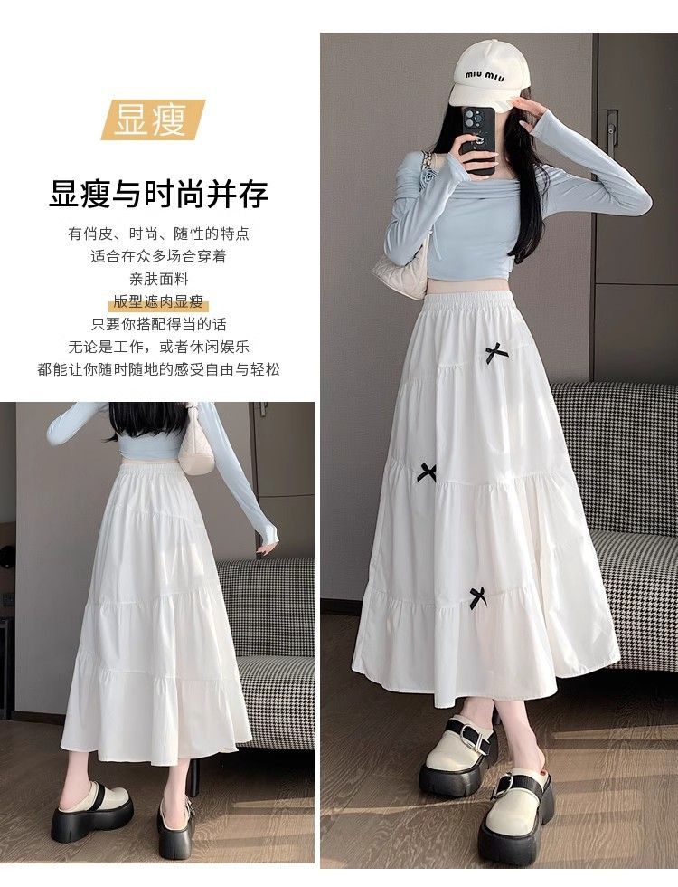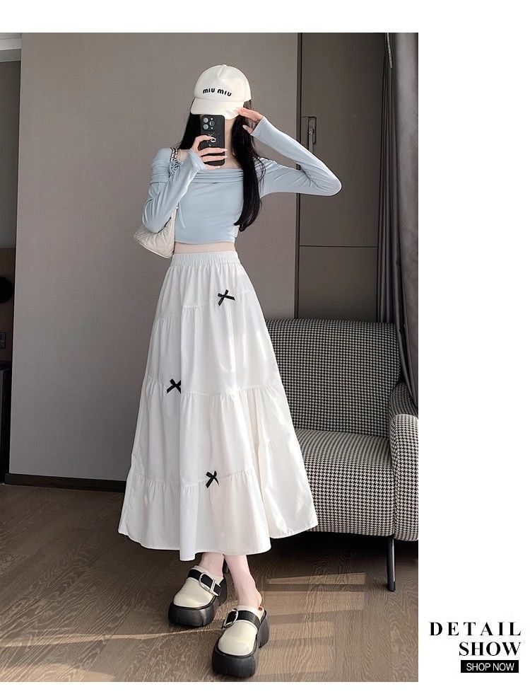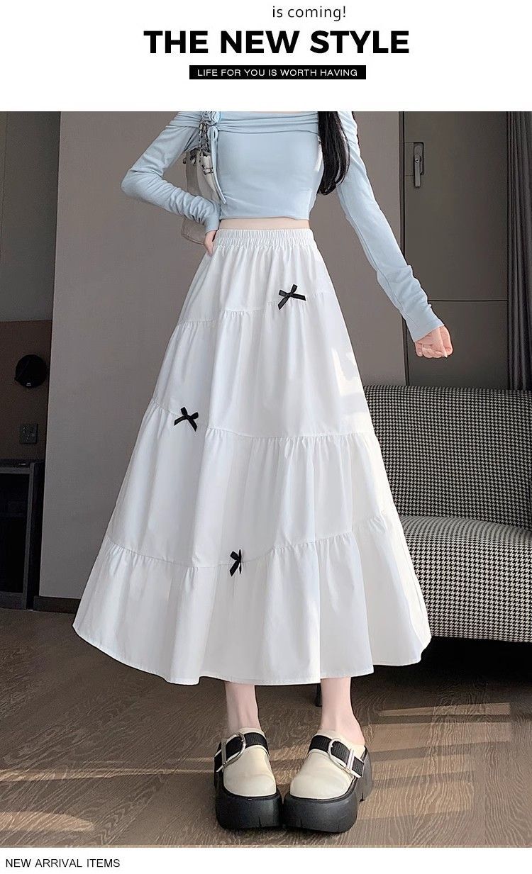 프랑스 스타일 헵번 스타일 활 치마 여성 가을 작은 높은 허리 A-라인 폰툰 스커트 슬리밍 대형 우산 스커트스토어 가기