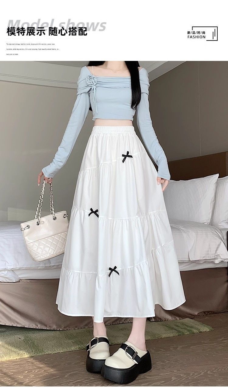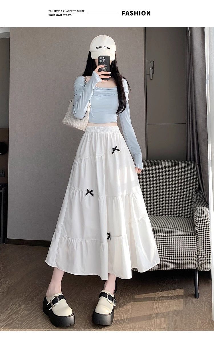 프랑스 스타일 헵번 스타일 활 치마 여성 가을 작은 높은 허리 A-라인 폰툰 스커트 슬리밍 대형 우산 스커트