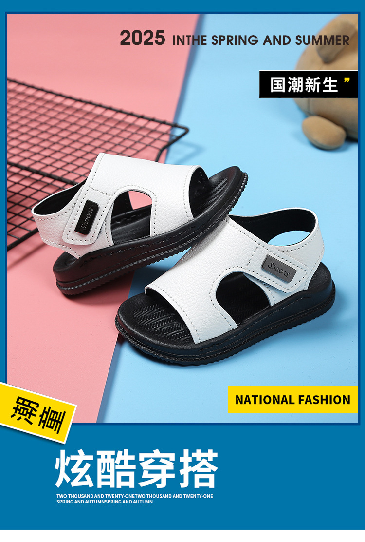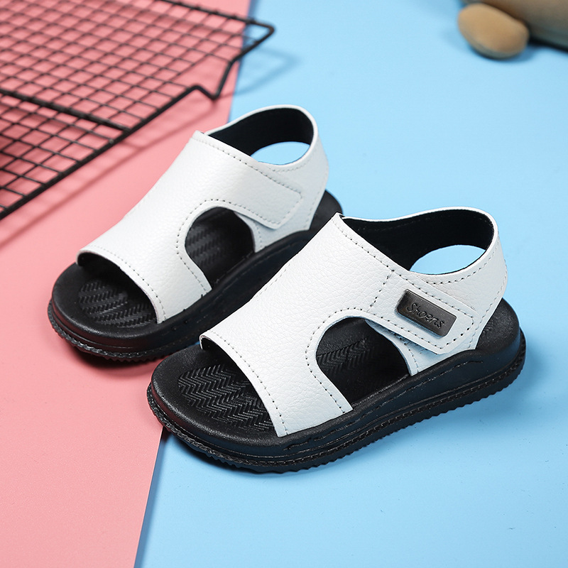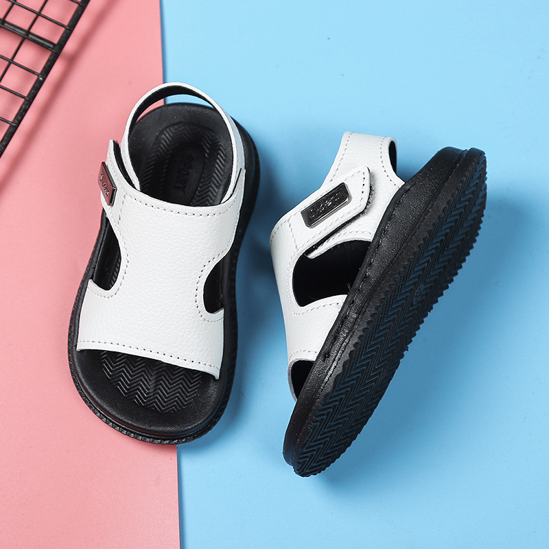 아기 샌들 어린이 해변 신발 2026 새로운 스타일 샌들 패셔너블하고 내구성이 뛰어난 흰색 미끄럼 방지 가죽 해변 신발