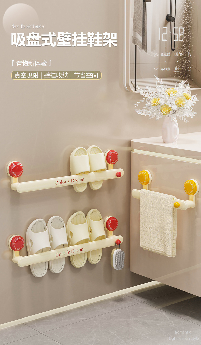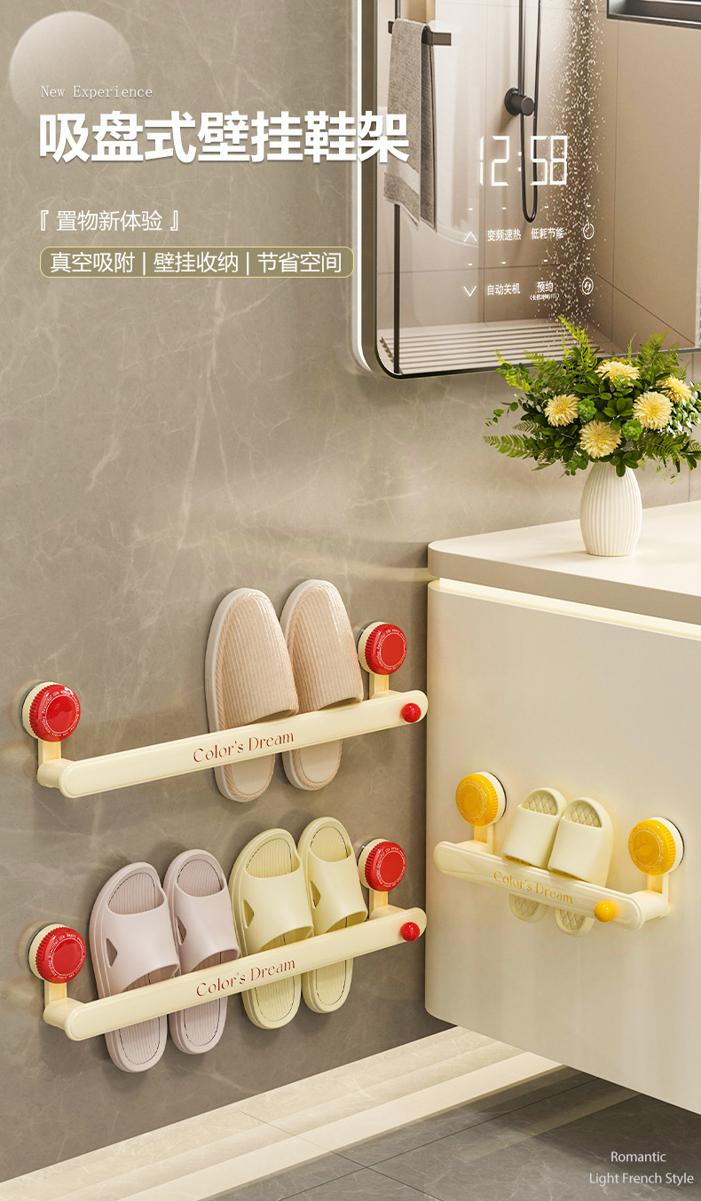흡입 컵 슬리퍼 랙 천공되지 않은 벽걸이 화장실 보관 랙 가정용 욕실 슬리퍼 랙 재고 도매