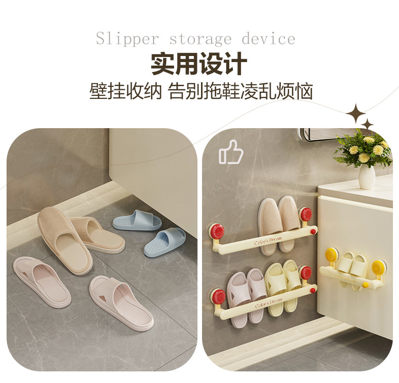 흡입 컵 슬리퍼 랙 천공되지 않은 벽걸이 화장실 보관 랙 가정용 욕실 슬리퍼 랙 재고 도매스토어 가기