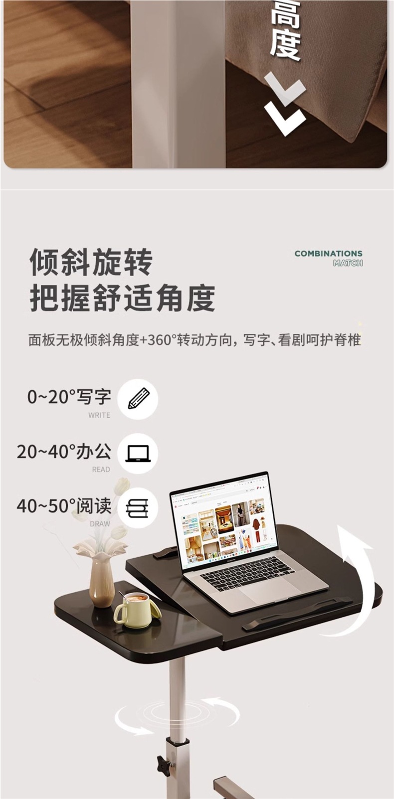 침대 옆 테이블 움직일 수 있는 침대 컴퓨터 작은 테이블 침실 리프팅 연구 책상 홈 노트북 접이식 테이블스토어 가기