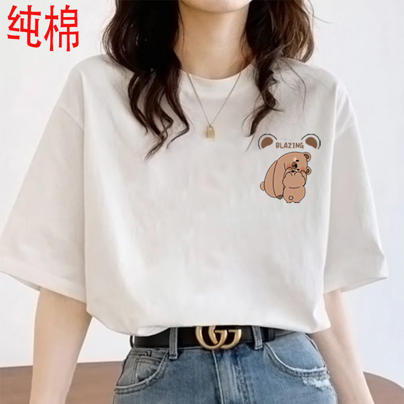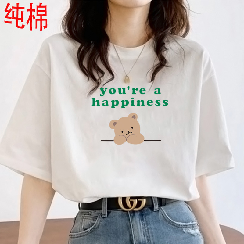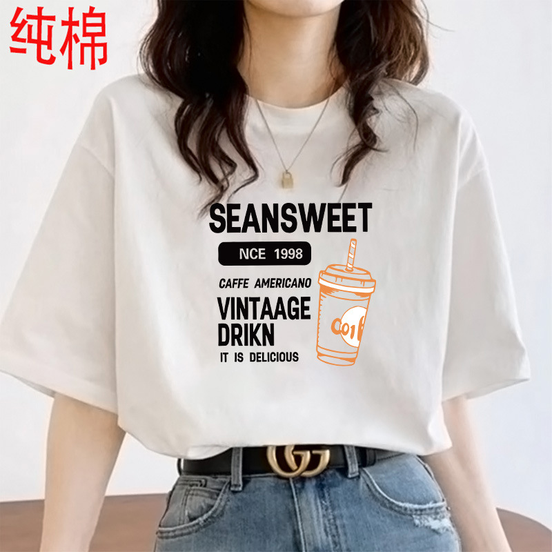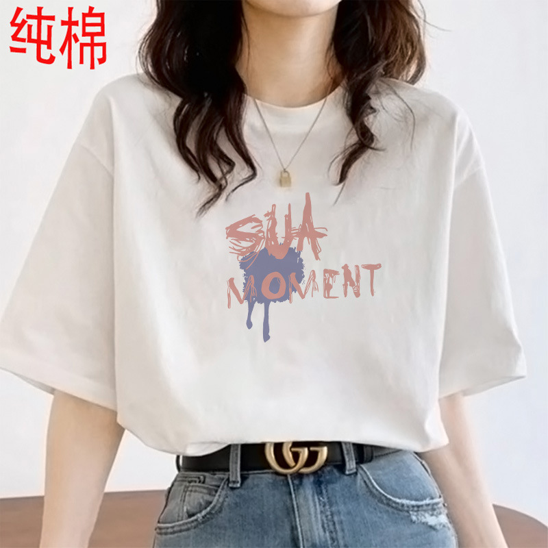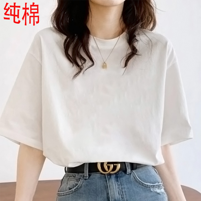 2026 여름 여성용 순면 반팔 티셔츠 여성용 신상품 한국 스타일 루즈핏 반팔 상의 인스타 트렌드 베이스 레이어 셔츠스토어 가기