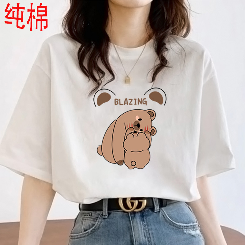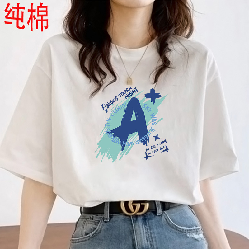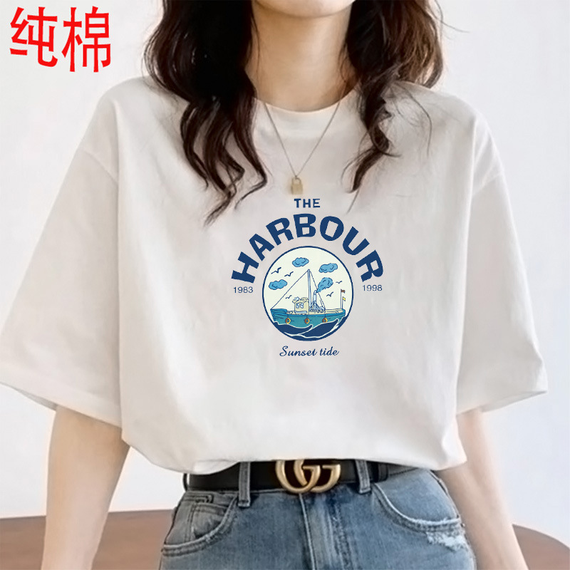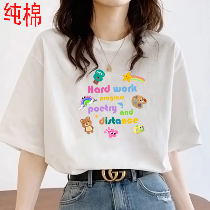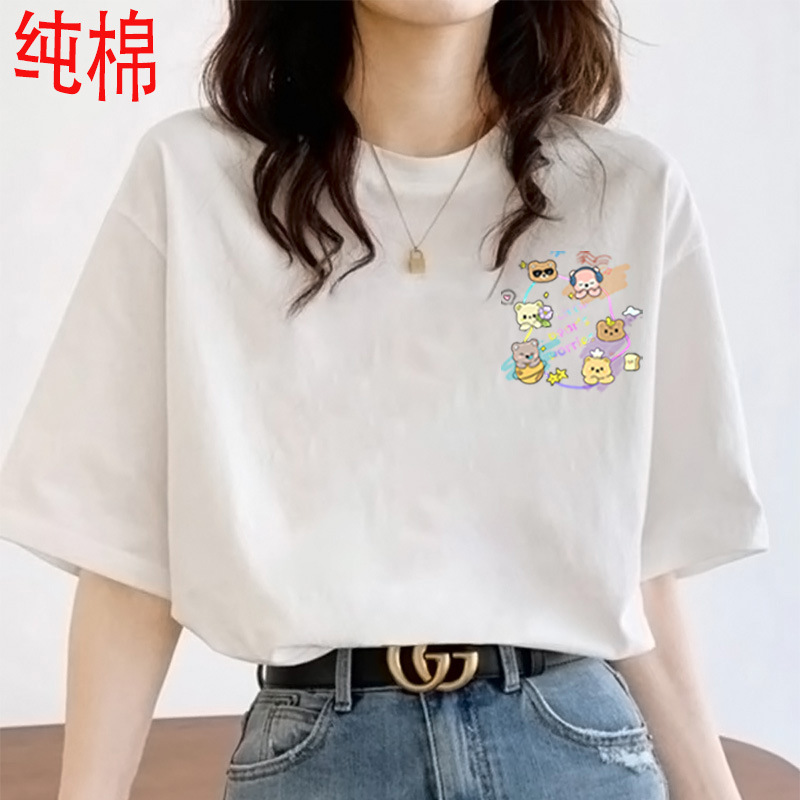 2026 여름 여성용 순면 반팔 티셔츠 여성용 신상품 한국 스타일 루즈핏 반팔 상의 인스타 트렌드 베이스 레이어 셔츠스토어 가기