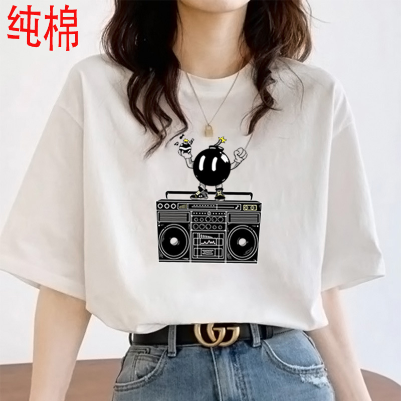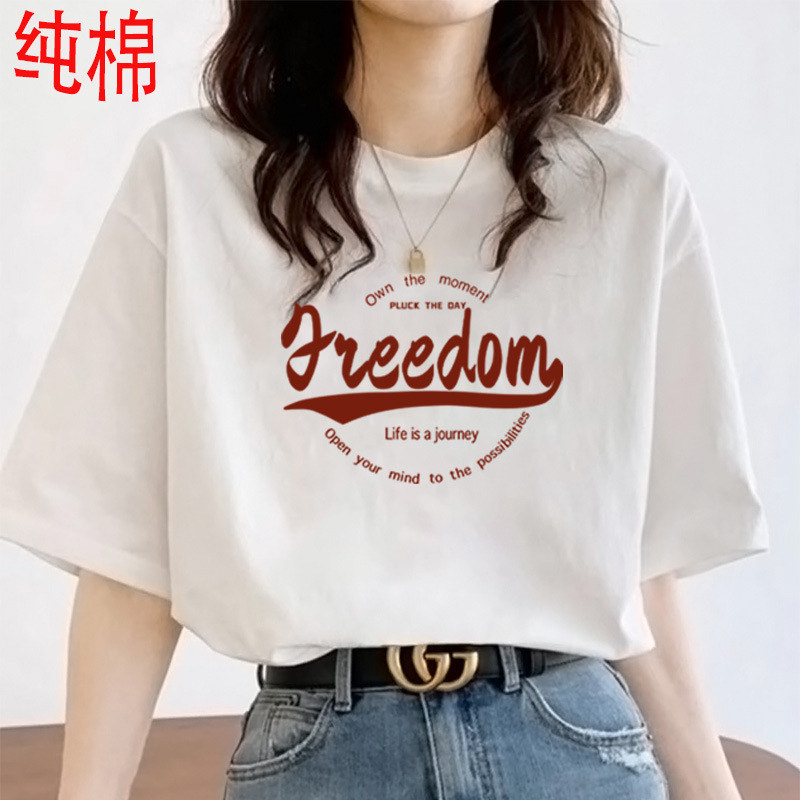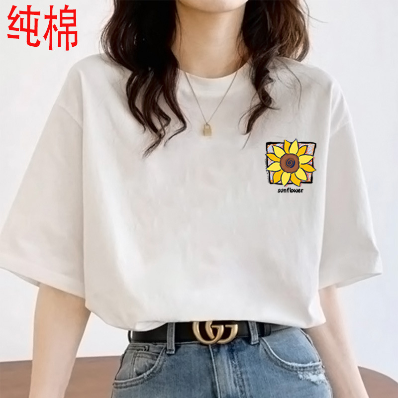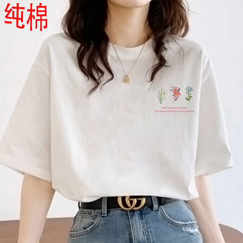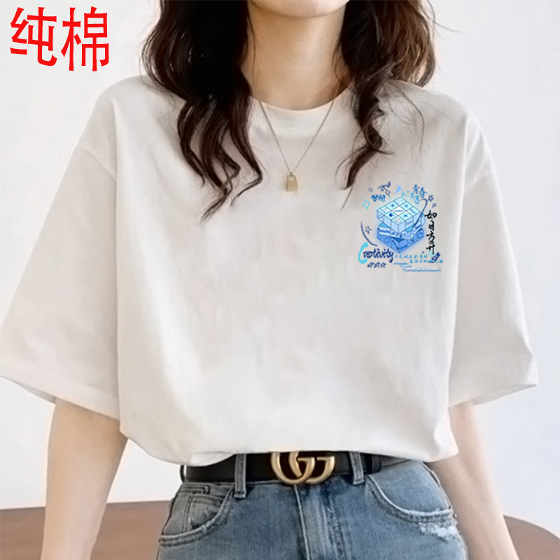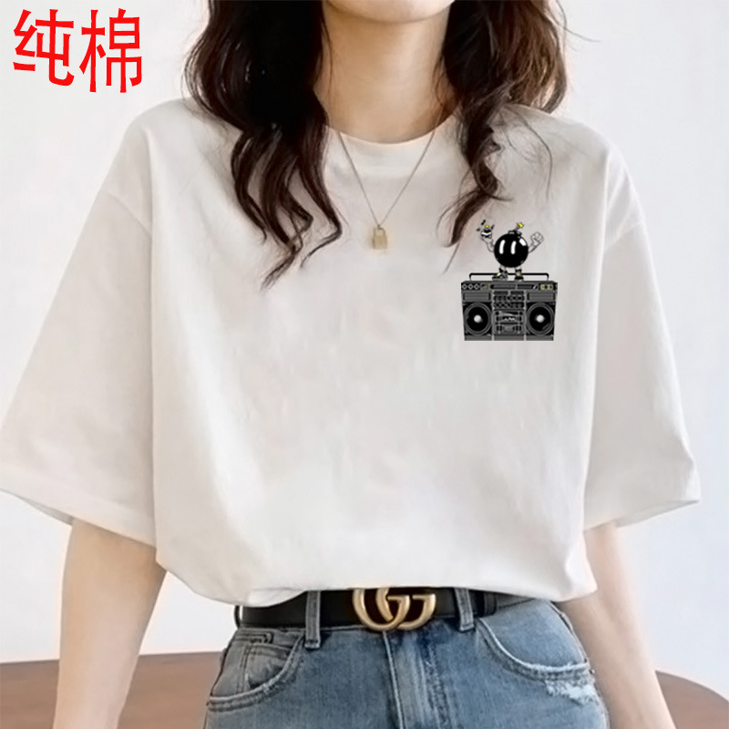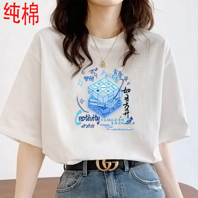2026 여름 여성용 순면 반팔 티셔츠 여성용 신상품 한국 스타일 루즈핏 반팔 상의 인스타 트렌드 베이스 레이어 셔츠
