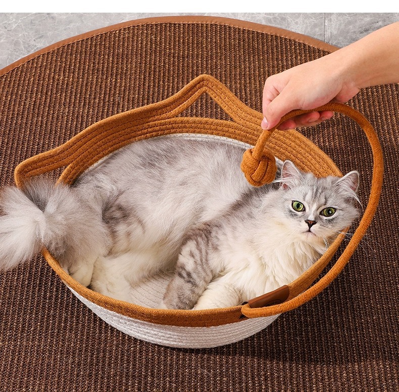 거친 대마 등나무 고양이 둥지 사계절 유니버설 여름 짠 고양이 용품 잠자는 매트 개 둥지 여름 애완 동물 침대