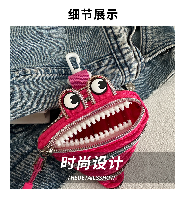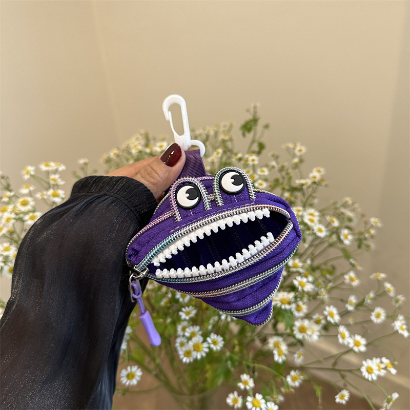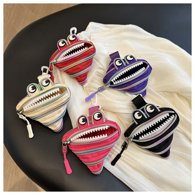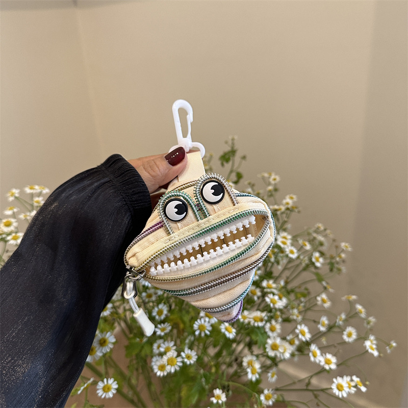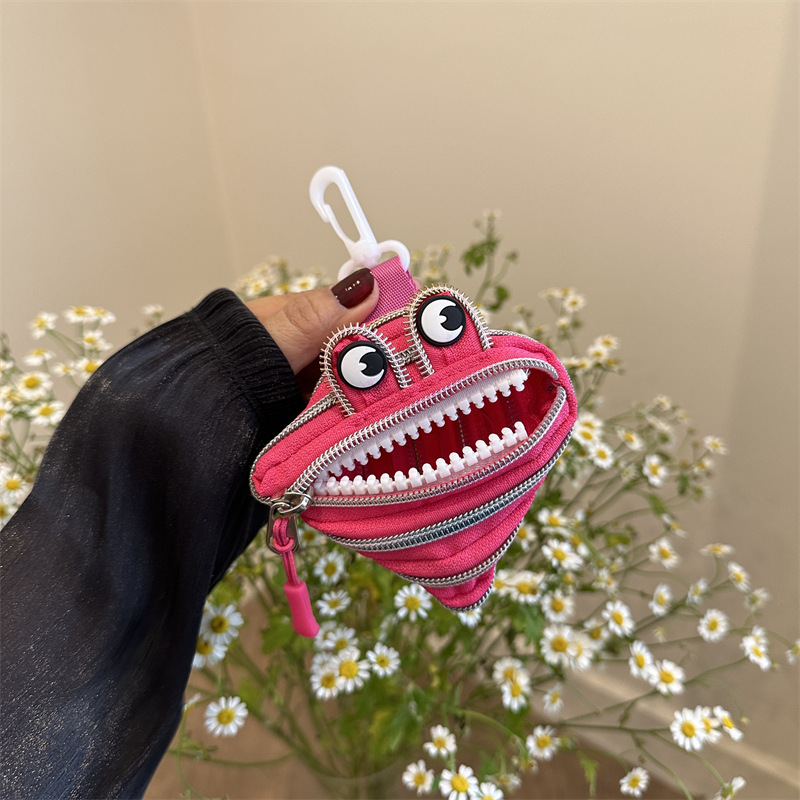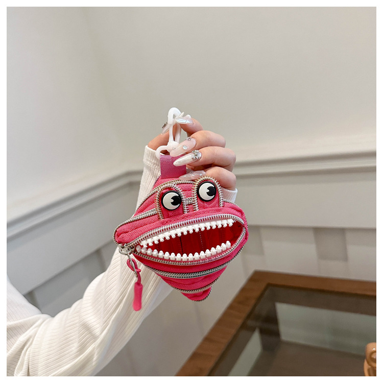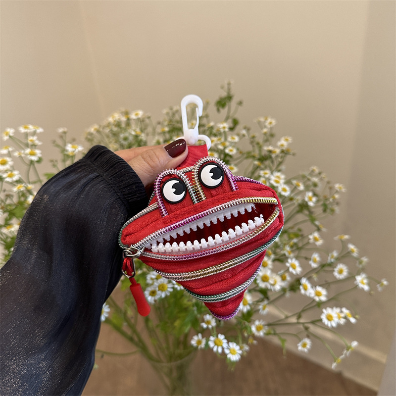 미니 작은 재미 못생긴 귀여운 작은 괴물 지퍼 헤드셋 귀여운 귀여운 변화 창조적 인 키 미니 빨간 가방스토어 가기
