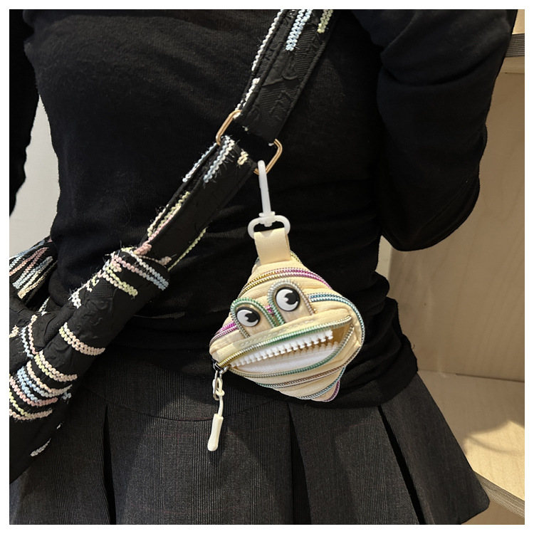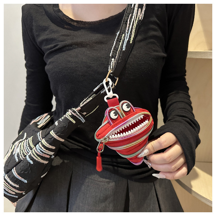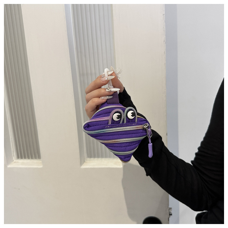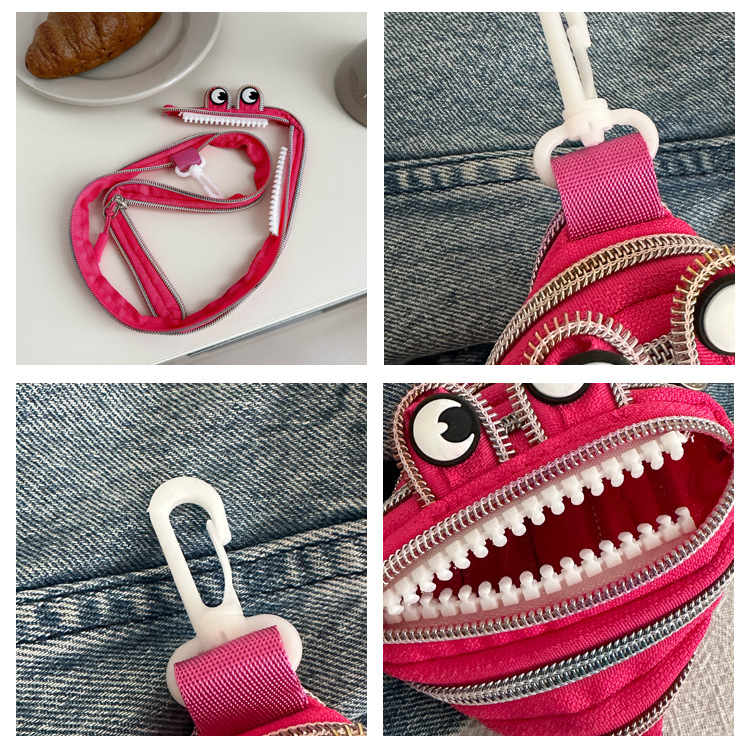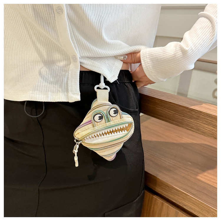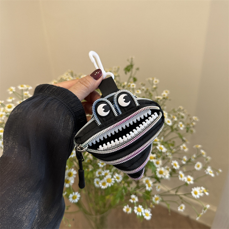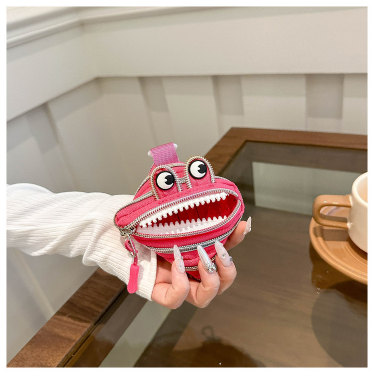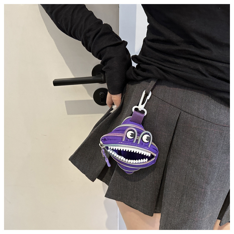미니 작은 재미 못생긴 귀여운 작은 괴물 지퍼 헤드셋 귀여운 귀여운 변화 창조적 인 키 미니 빨간 가방스토어 가기