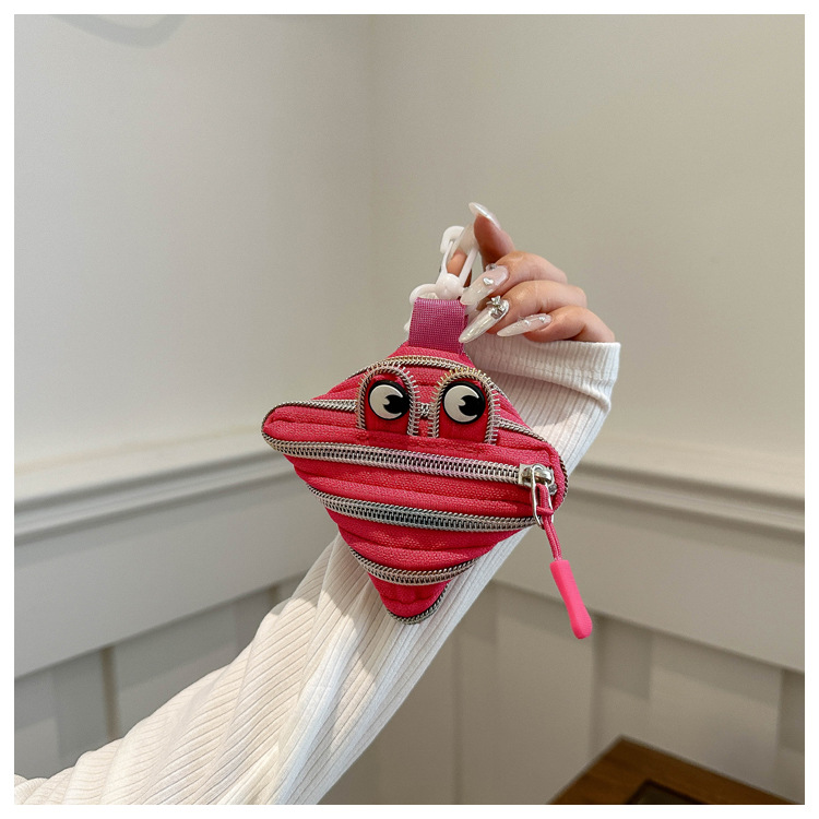 미니 작은 재미 못생긴 귀여운 작은 괴물 지퍼 헤드셋 귀여운 귀여운 변화 창조적 인 키 미니 빨간 가방