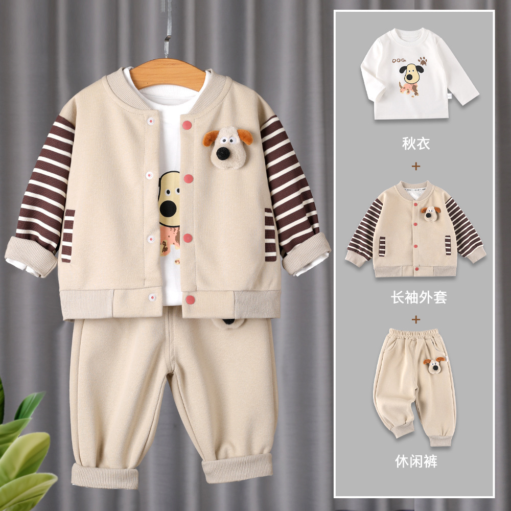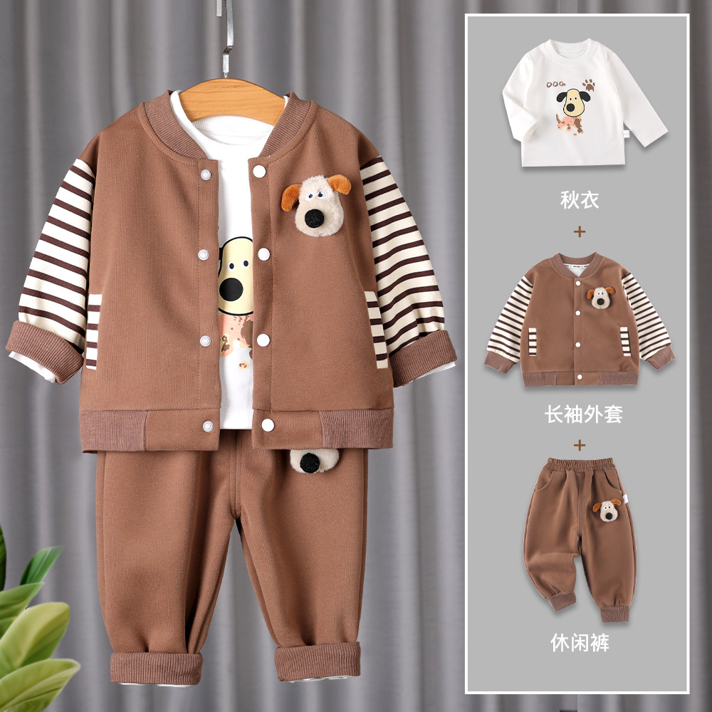소년 아동복 봄과 가을 세트 2025 새로운 아기 잘 생긴 캐주얼 어린이 긴팔 3 피스 세트 유행 줄무늬스토어 가기