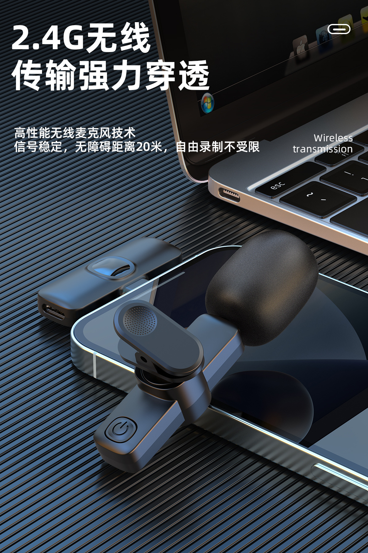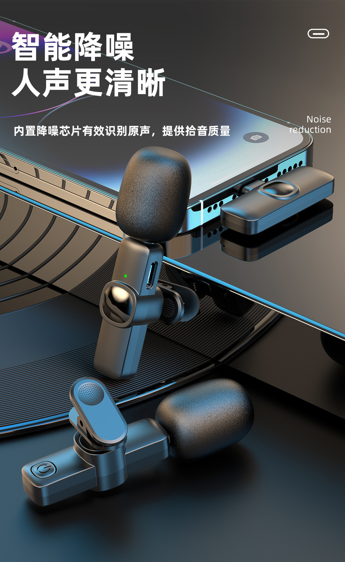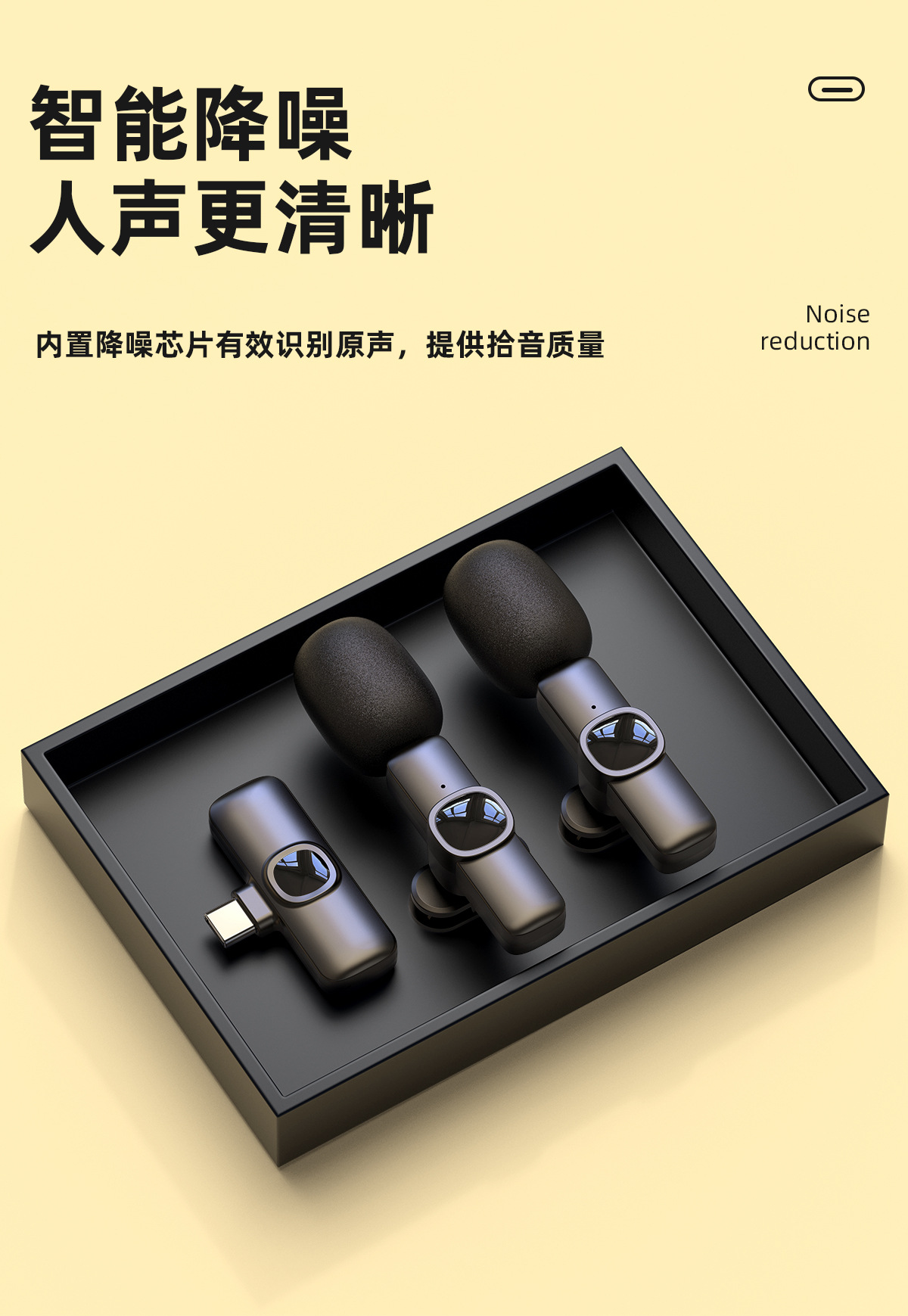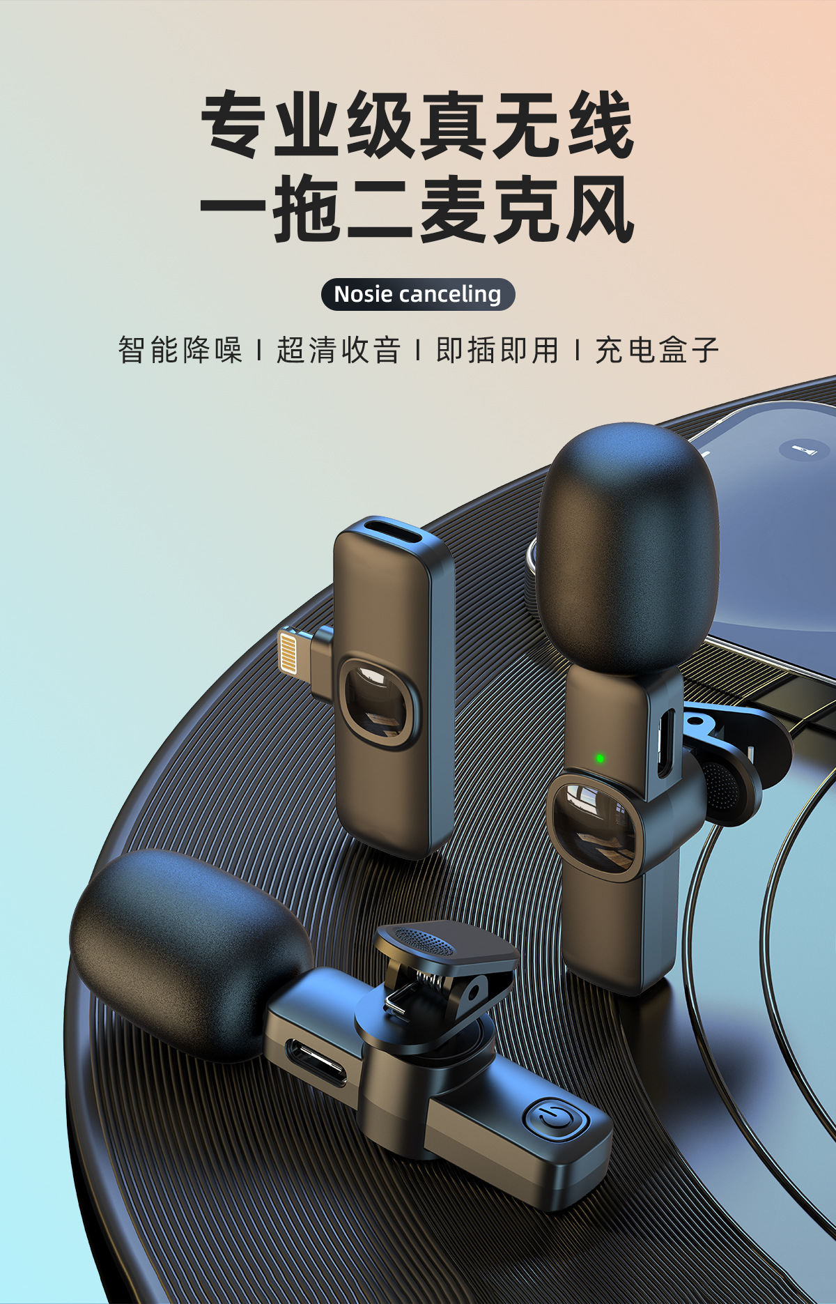 J1 새로운 무선 칼라 클립 마이크 미니 원 드래그 두 마이크 국경 간 라이브 픽업 소음 감소 마이크 공장