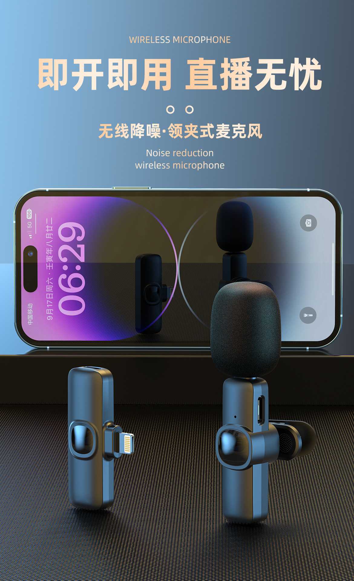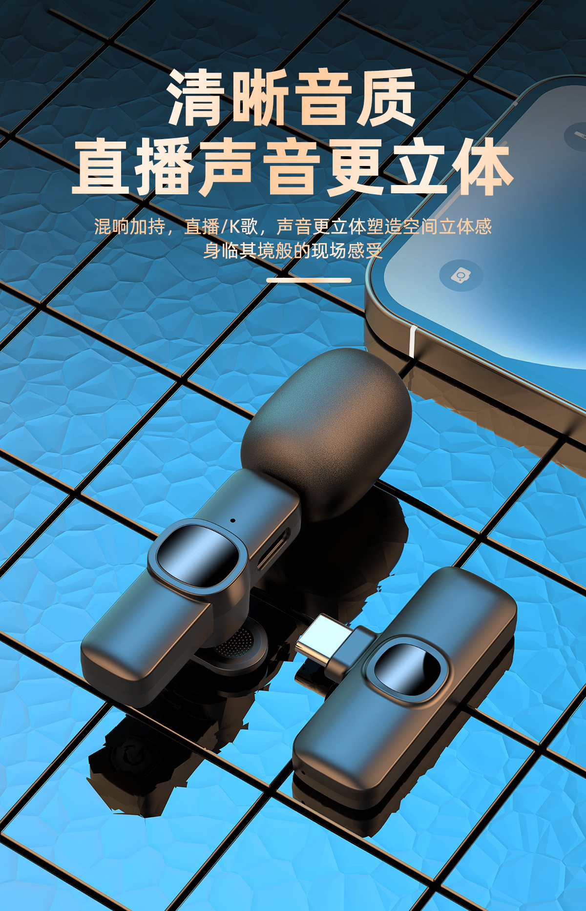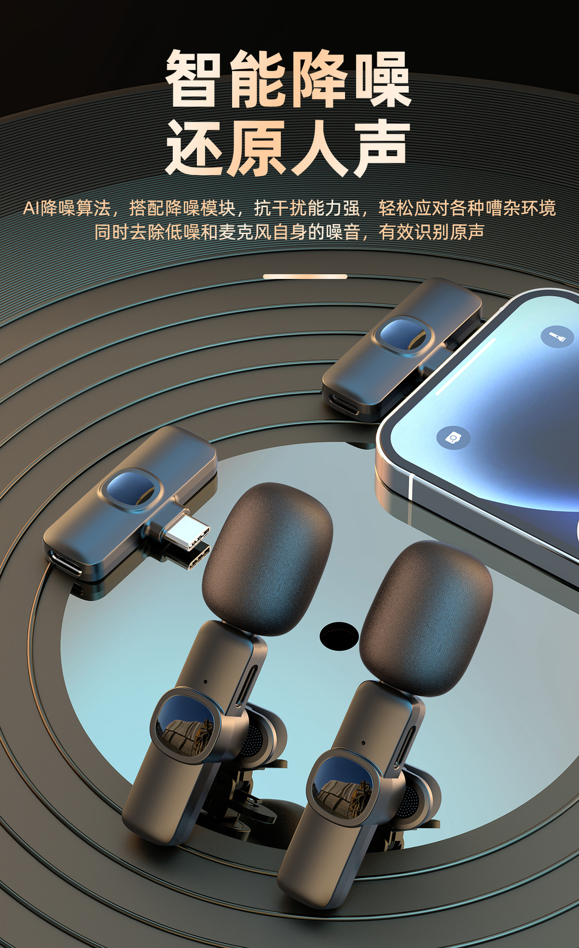 J1 새로운 무선 칼라 클립 마이크 미니 원 드래그 두 마이크 국경 간 라이브 픽업 소음 감소 마이크 공장
