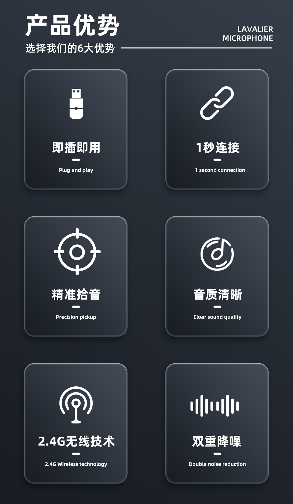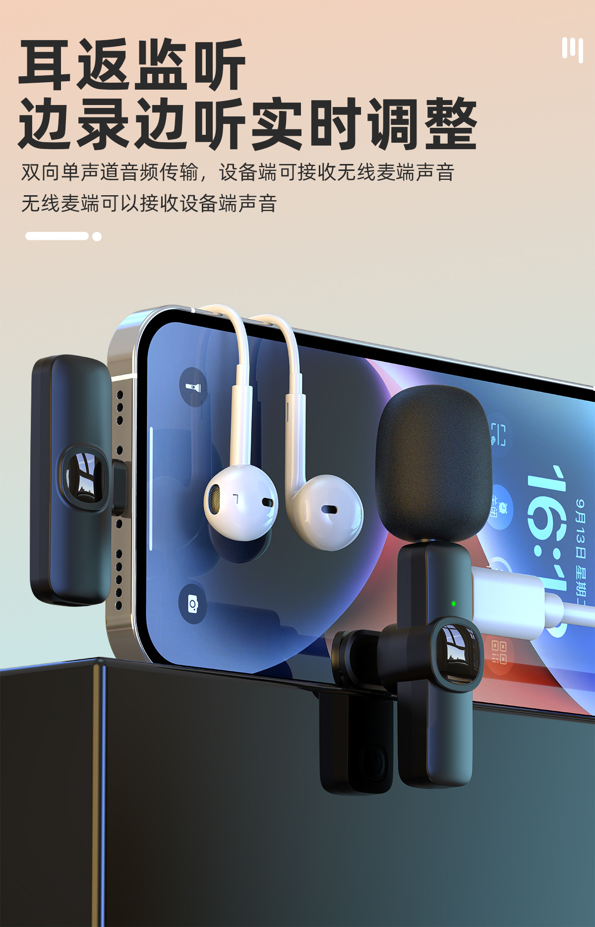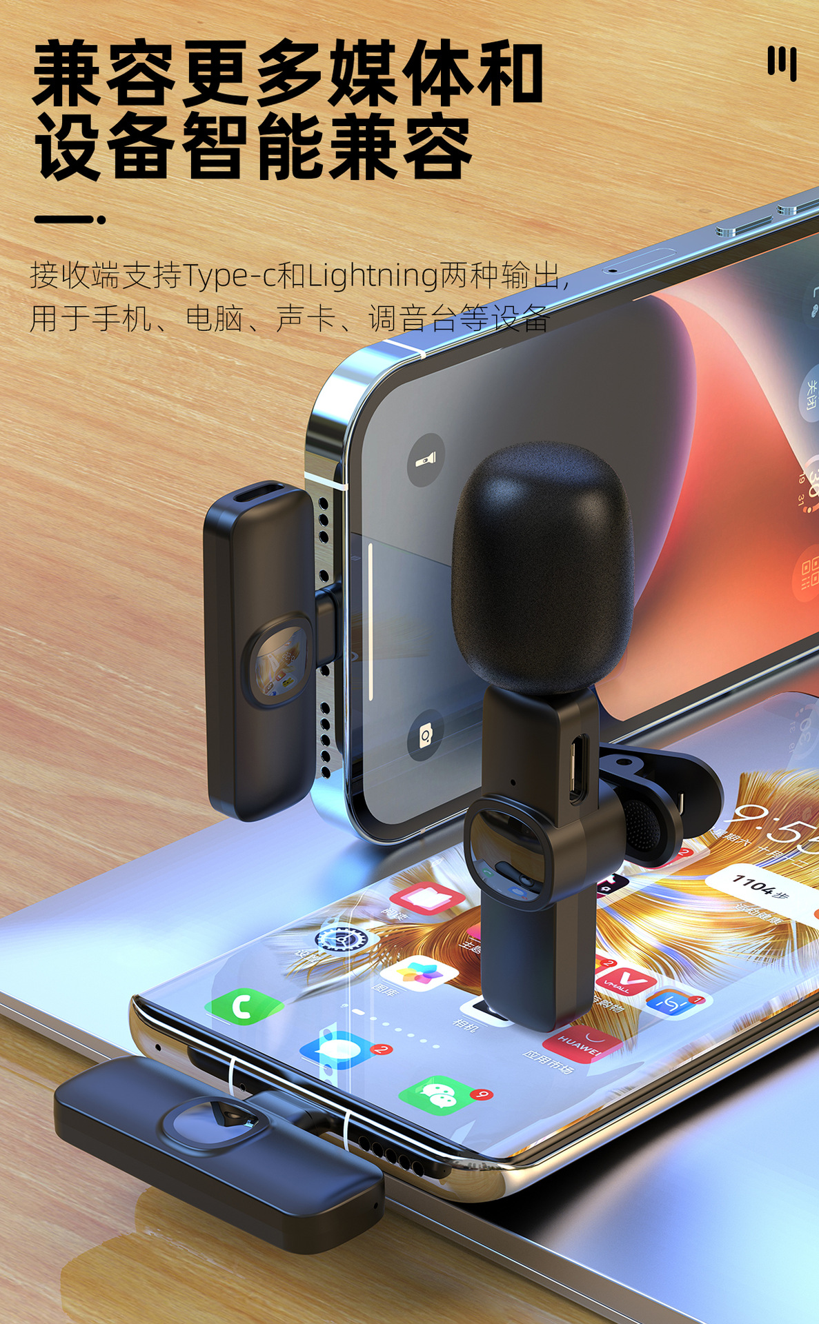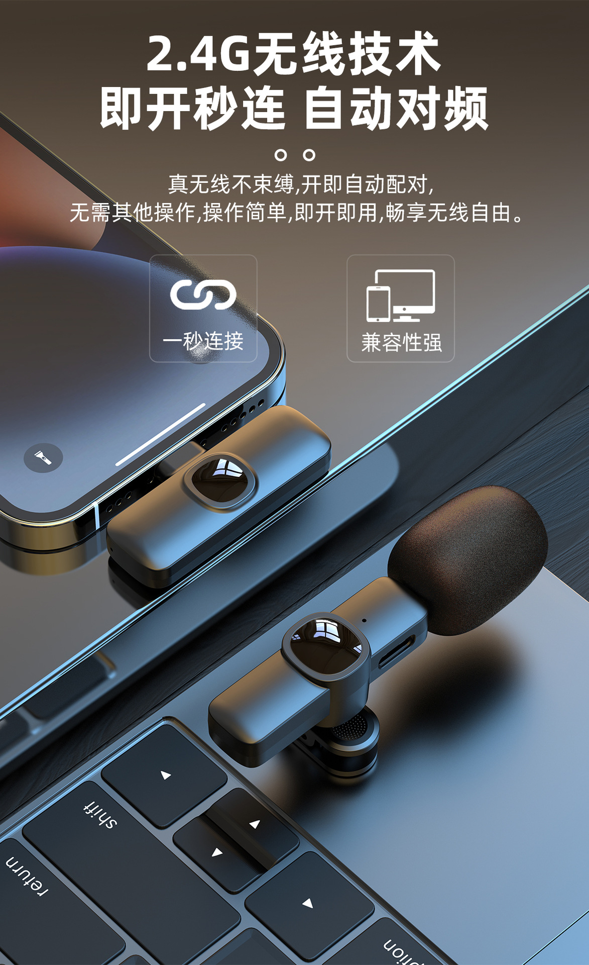 J1 새로운 무선 칼라 클립 마이크 미니 원 드래그 두 마이크 국경 간 라이브 픽업 소음 감소 마이크 공장