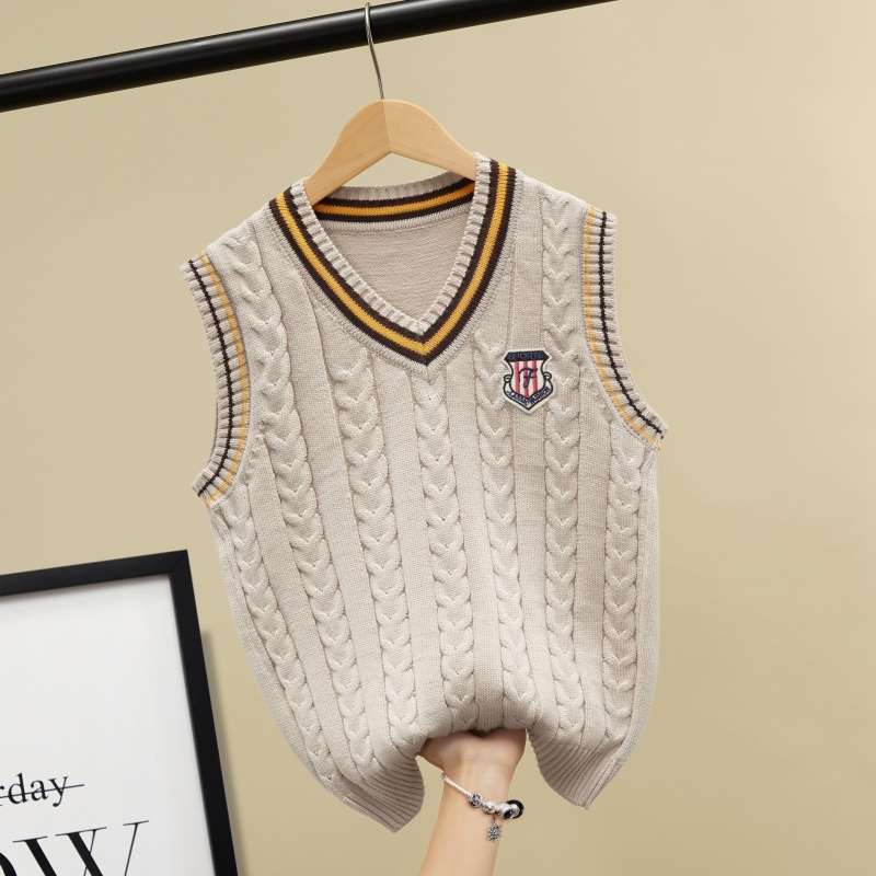 소년과 소녀 니트 조끼 조끼 봄과 가을 새로운 어린이 아기 면화 기모 스웨터 웨이스트 코트스토어 가기