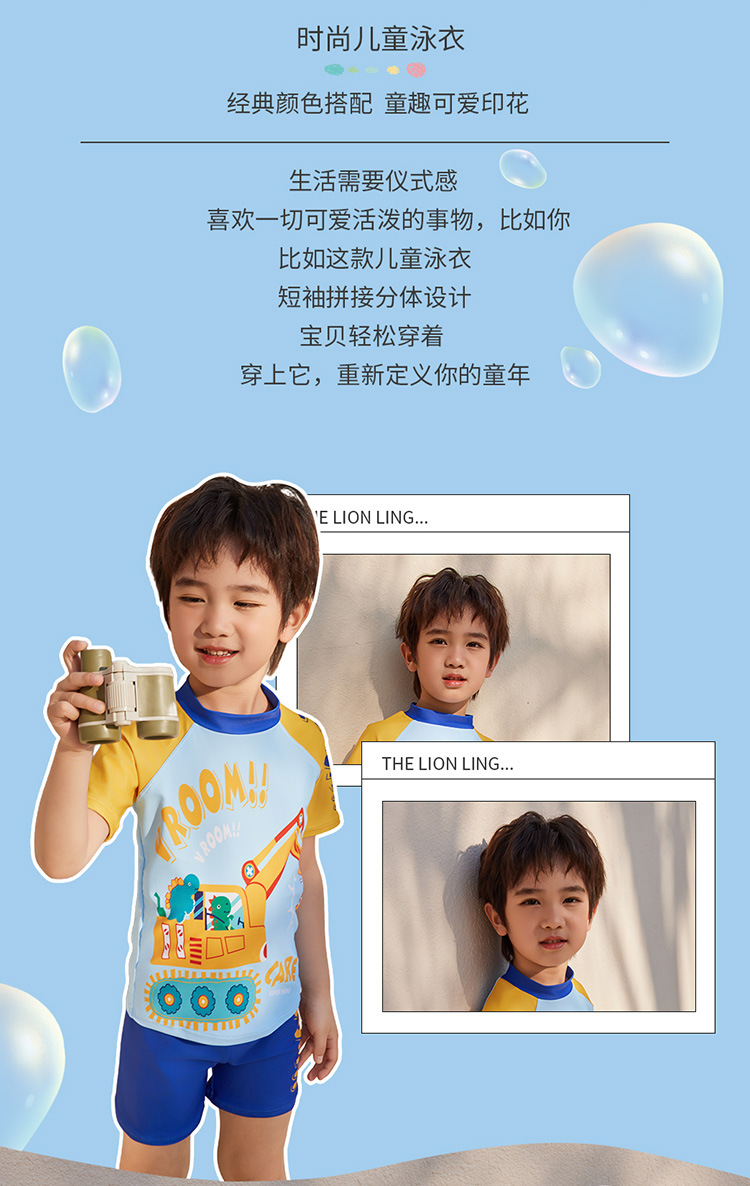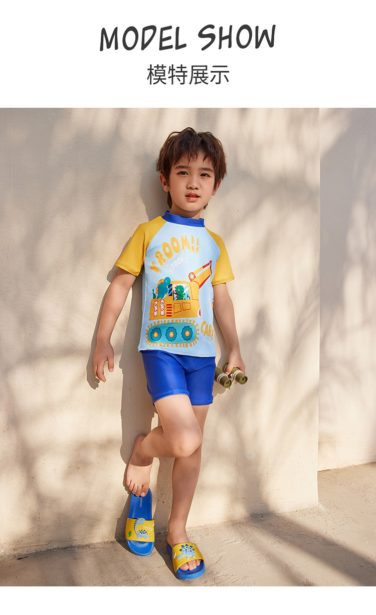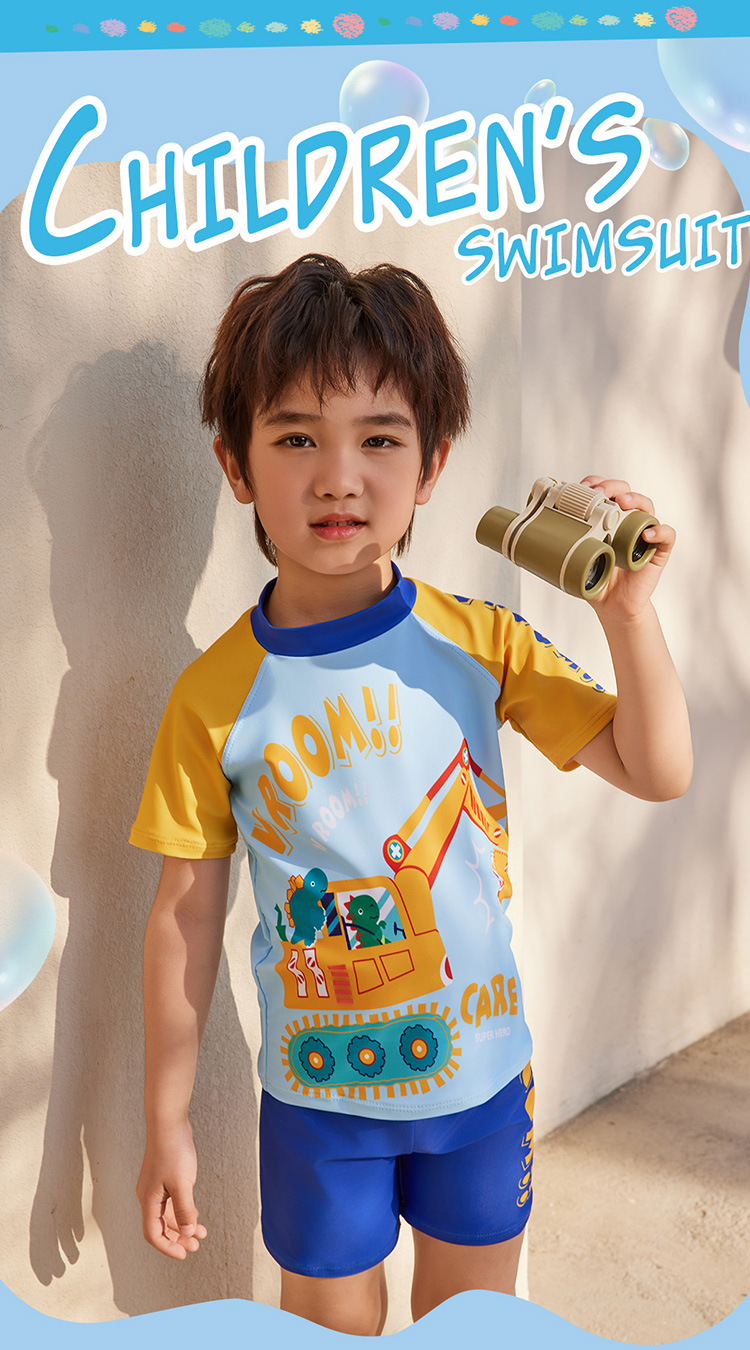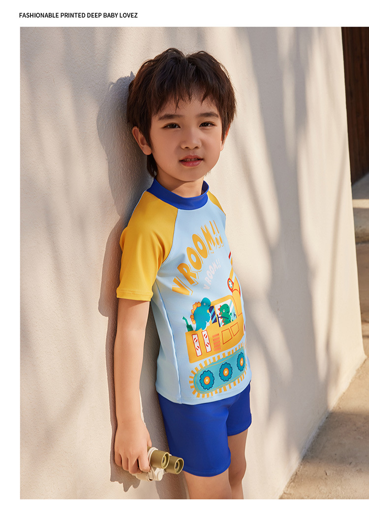 어린이 수영복 소년 트렌디 한 잘 생긴 만화 굴착기 중형 2 피스 어린이 수영복