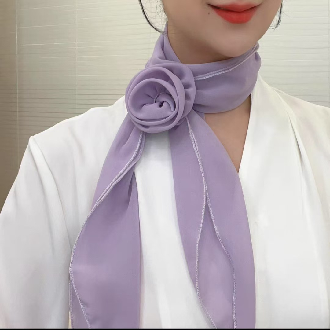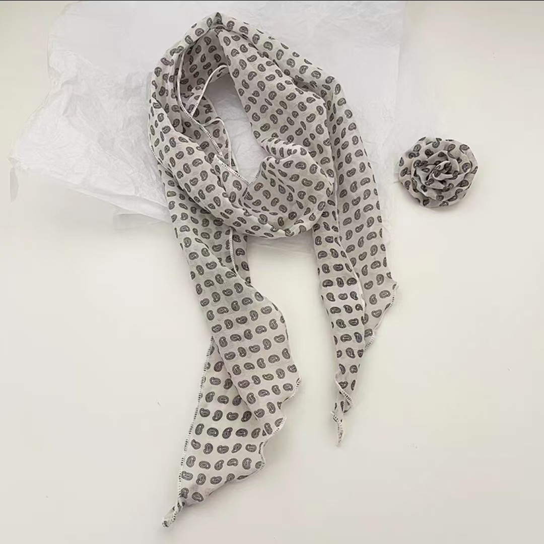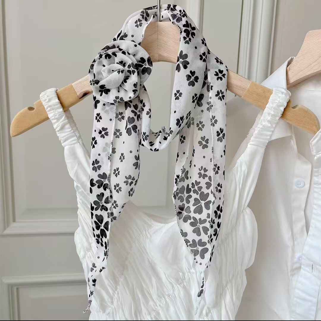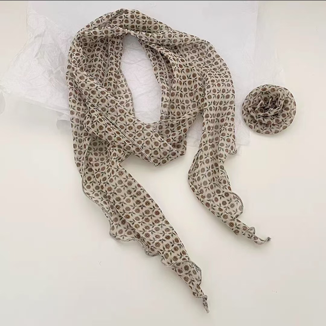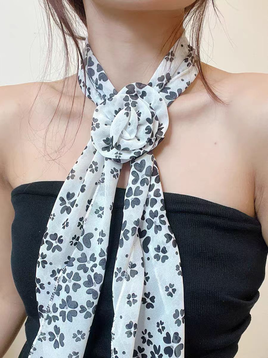 새로운 도착 올매치 패션 스카프 선스크린 여성 스카프 얇은 우아한 리본 꽃 실크 스카프 헤어 밴드 패션 폴로 닷스토어 가기