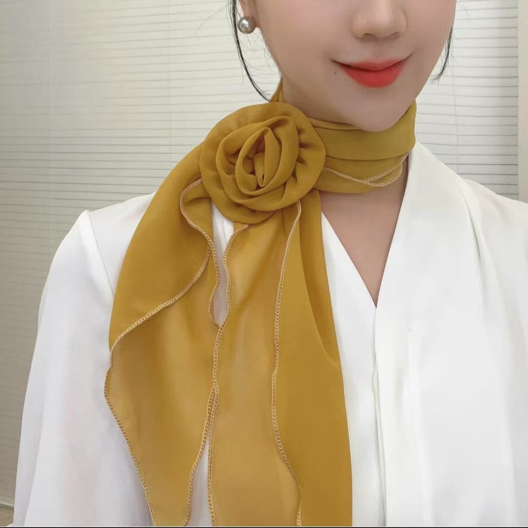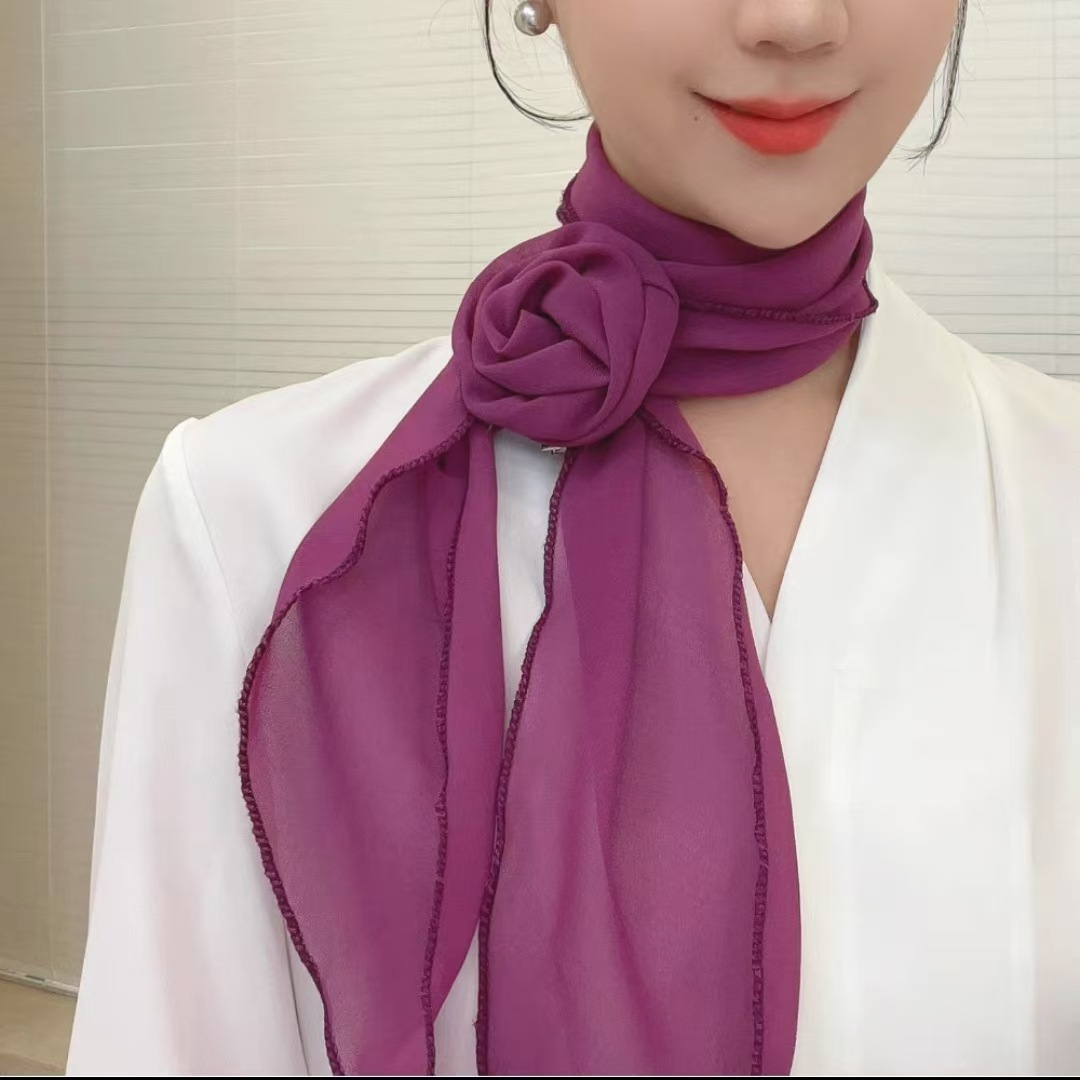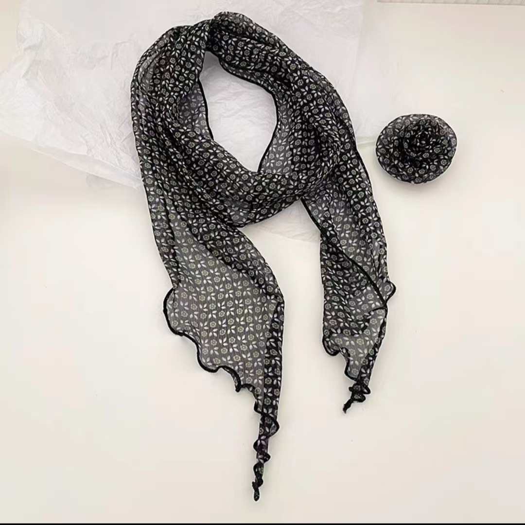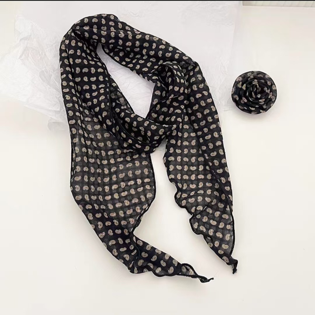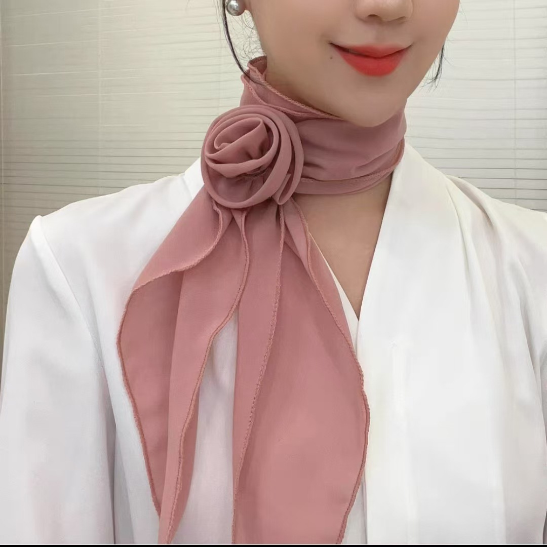 새로운 도착 올매치 패션 스카프 선스크린 여성 스카프 얇은 우아한 리본 꽃 실크 스카프 헤어 밴드 패션 폴로 닷스토어 가기
