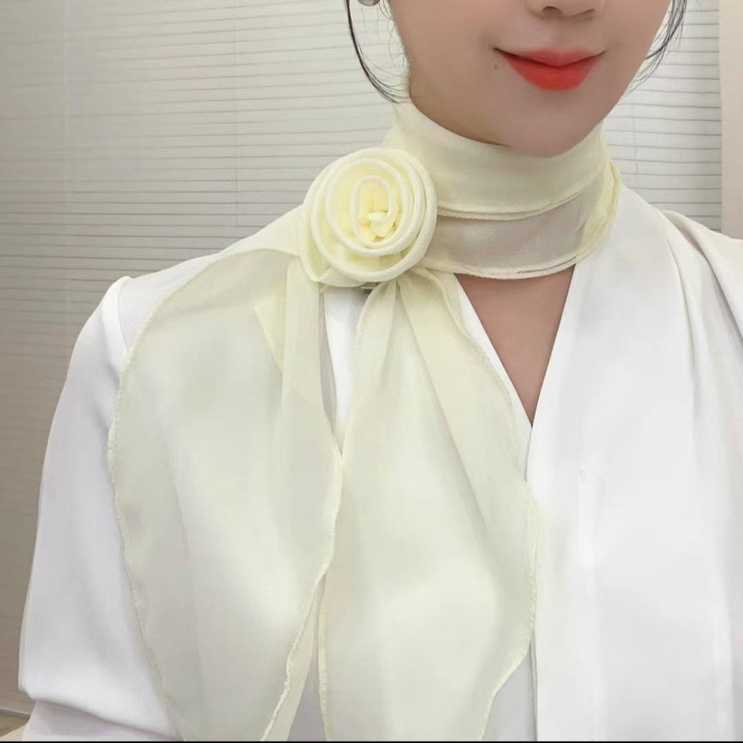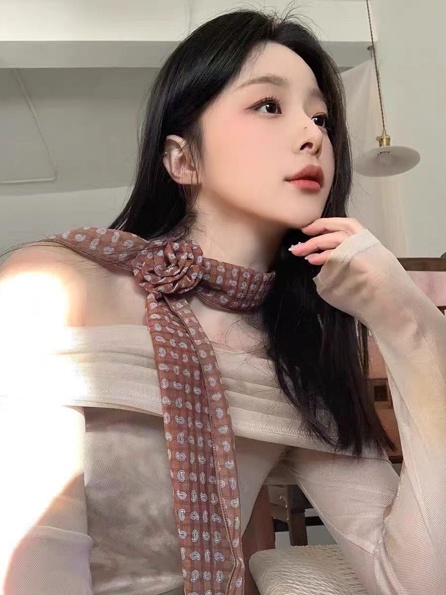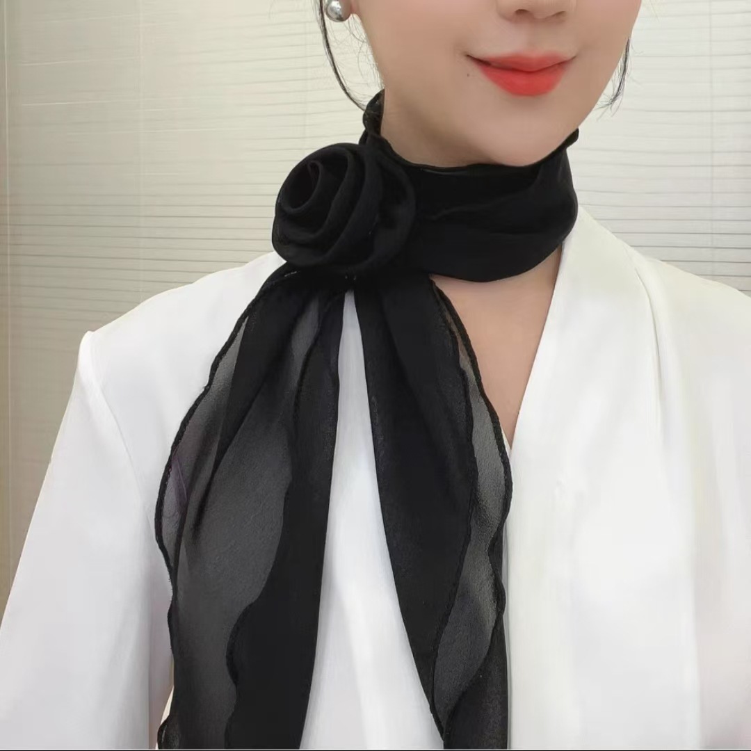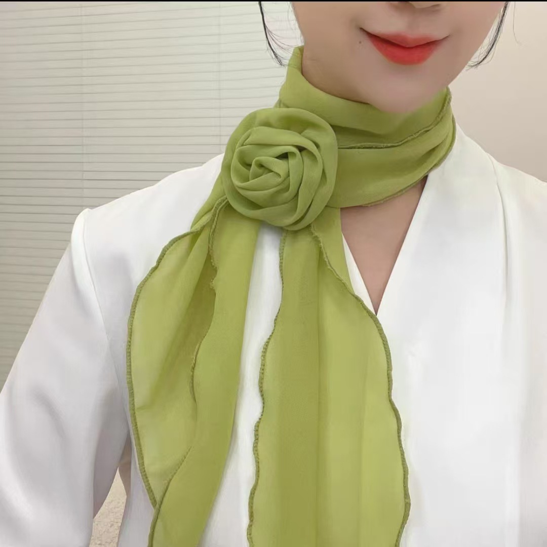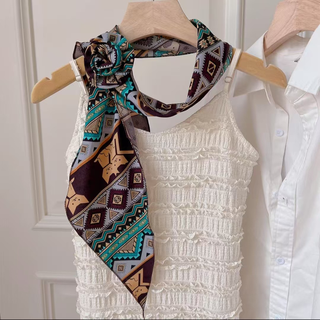 새로운 도착 올매치 패션 스카프 선스크린 여성 스카프 얇은 우아한 리본 꽃 실크 스카프 헤어 밴드 패션 폴로 닷스토어 가기