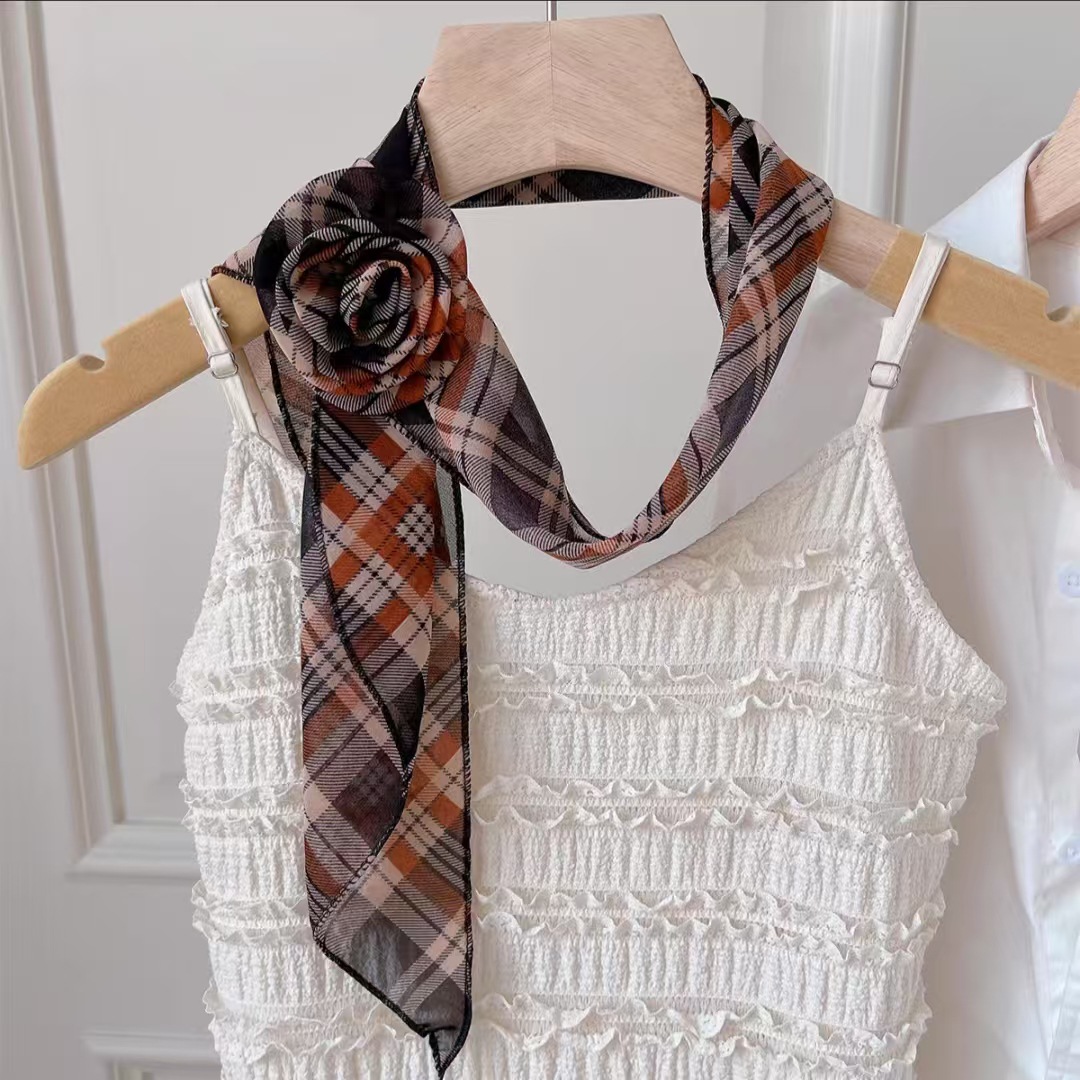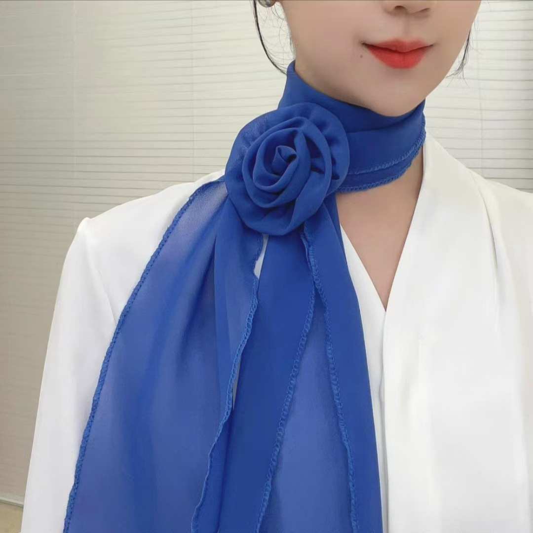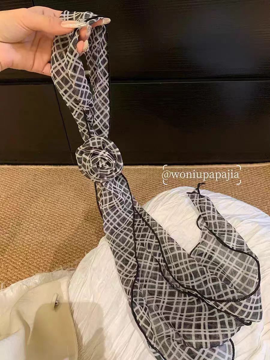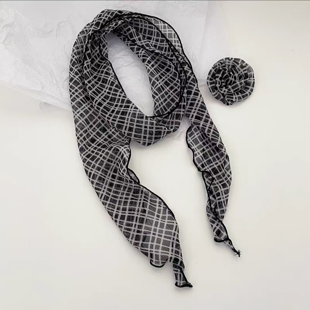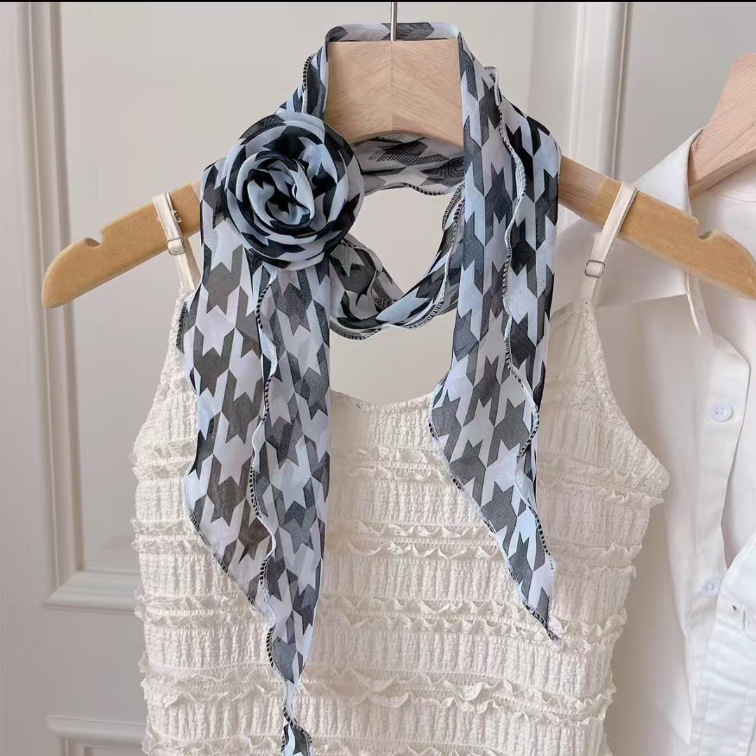 새로운 도착 올매치 패션 스카프 선스크린 여성 스카프 얇은 우아한 리본 꽃 실크 스카프 헤어 밴드 패션 폴로 닷스토어 가기